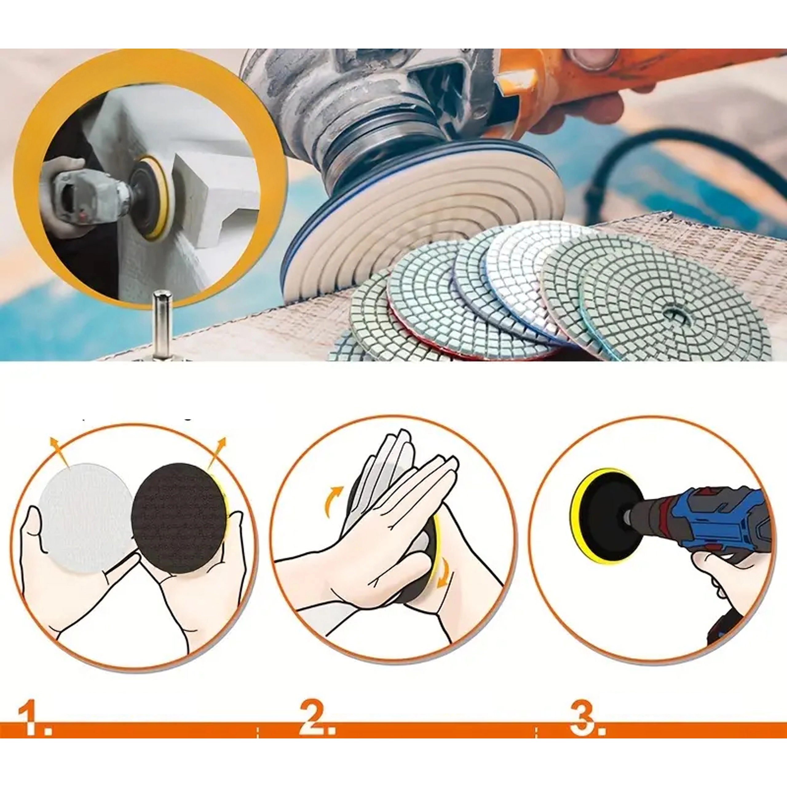 Dankzij het klittenband plaatst u de schijven eenvoudig op de steunpad en wisselt u ze binnen seconden. Geschikt voor gebruik met een haakse slijper of polijstmachine en voor werk nat en droog, afhankelijk van de materiaaleisen.
