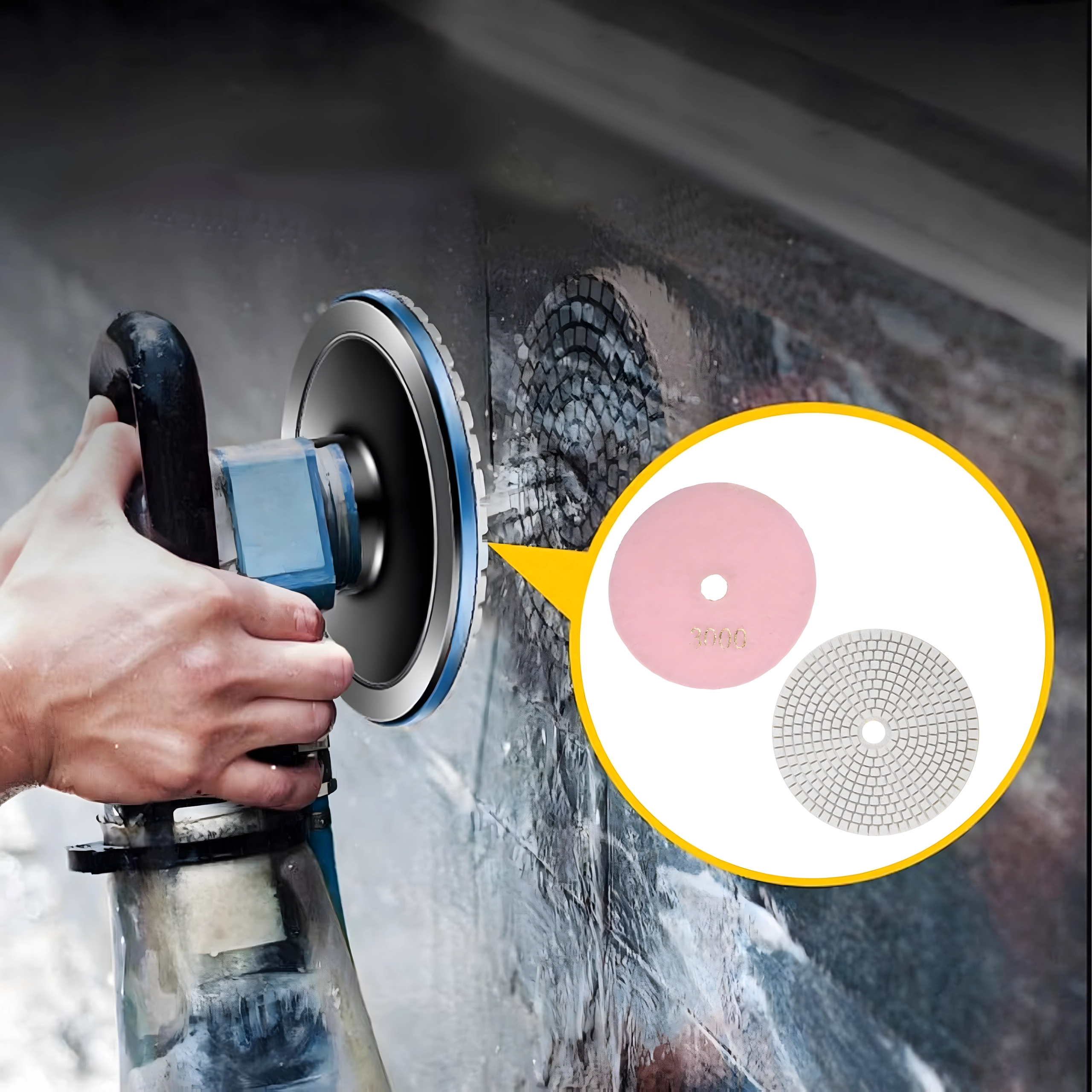 Korrel 3000 is ideaal voor de laatste polijststap – het egaliseert het oppervlak en geeft het materiaal een sterke glans zonder strepen.