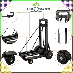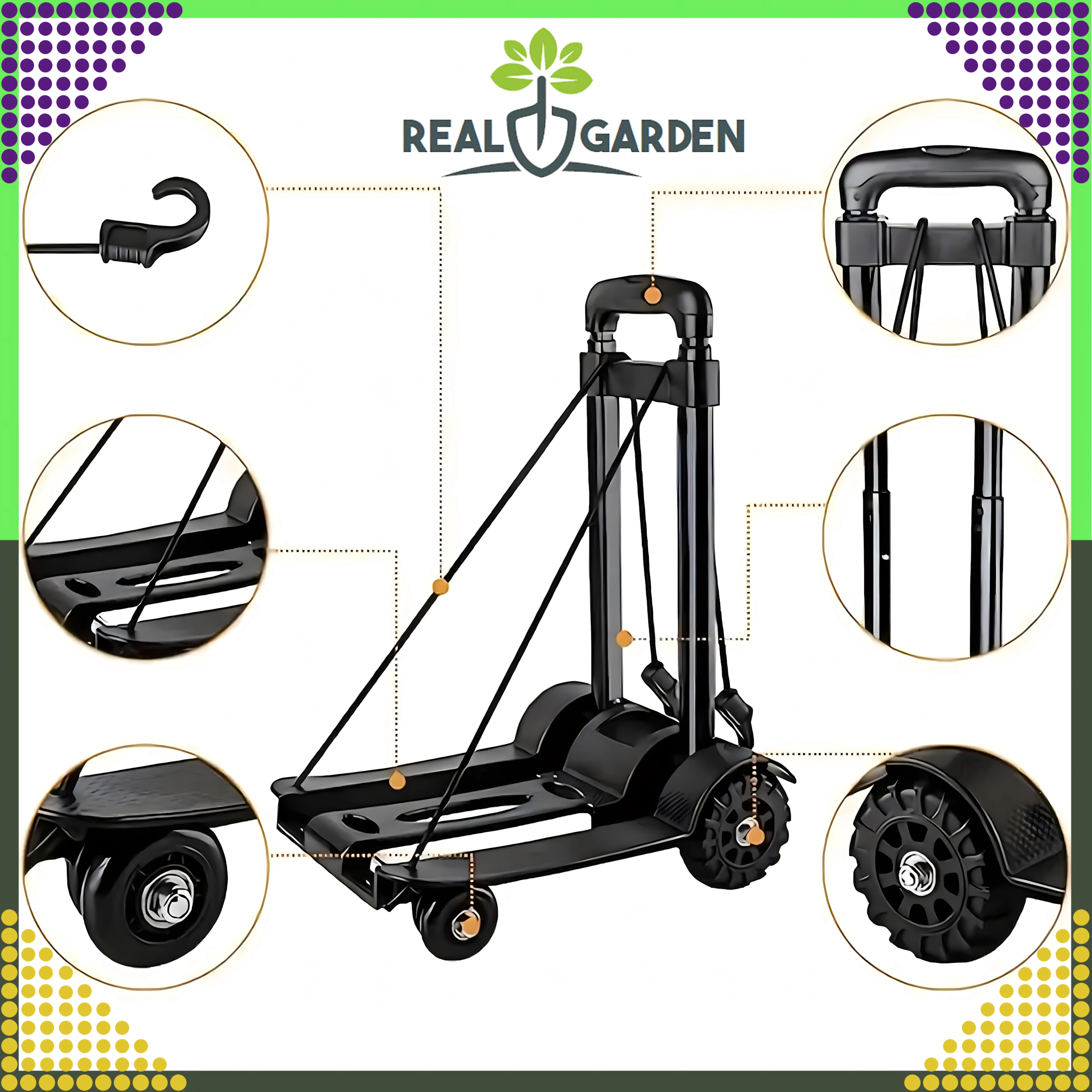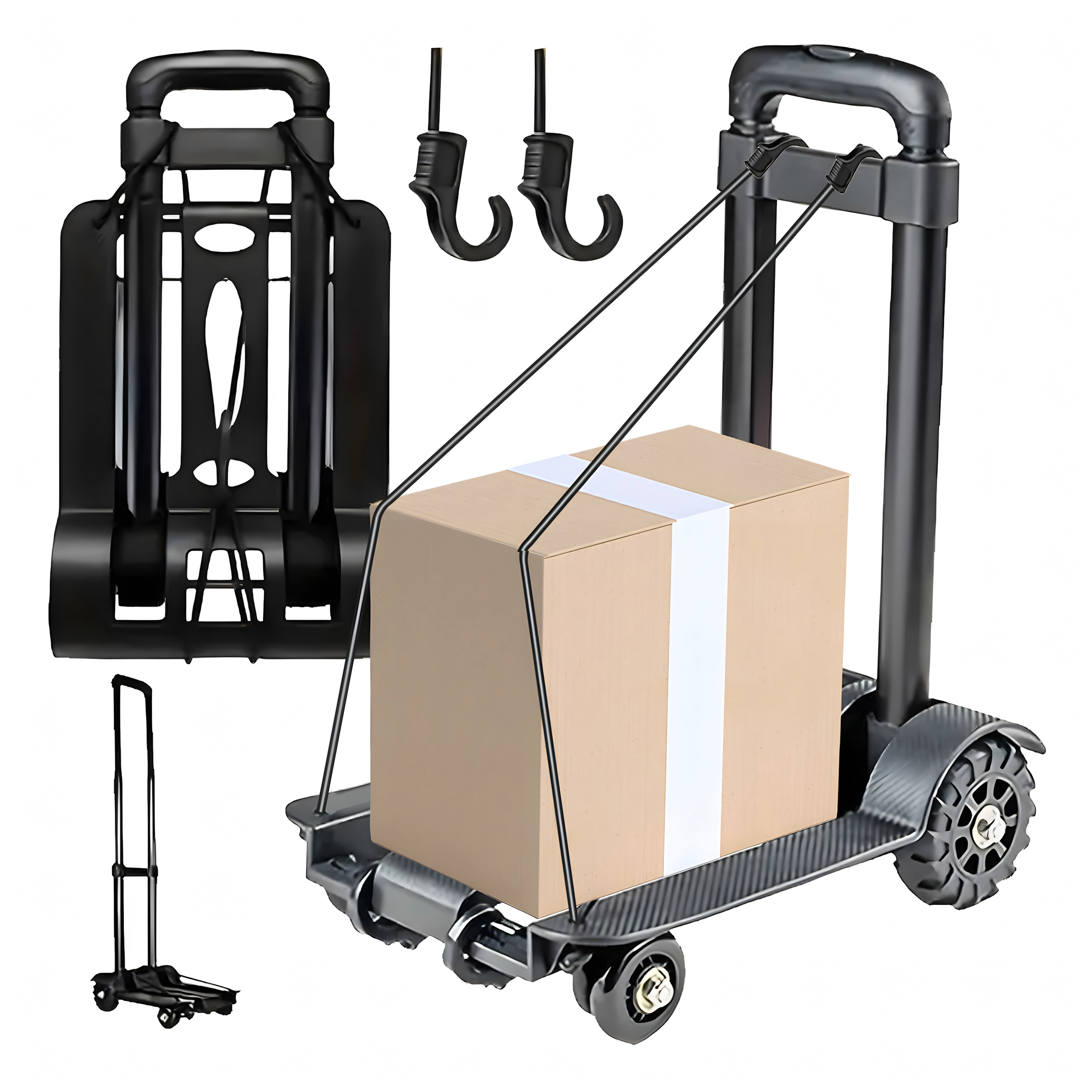 De kar is ideaal voor boodschappen, pakketbezorging, magazijnen en werkplaatsen. In de verpakking zitten rubberen spansnoeren met haken die de vervoerde lading stevig op zijn plaats houden en de veiligheid bij het hanteren vergroten.