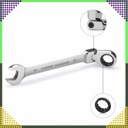De ratelring versnelt vast- en losdraaien zonder voortdurend de sleutel te hoeven verzetten, ideaal in krappe ruimtes rond motor of fietsframe.