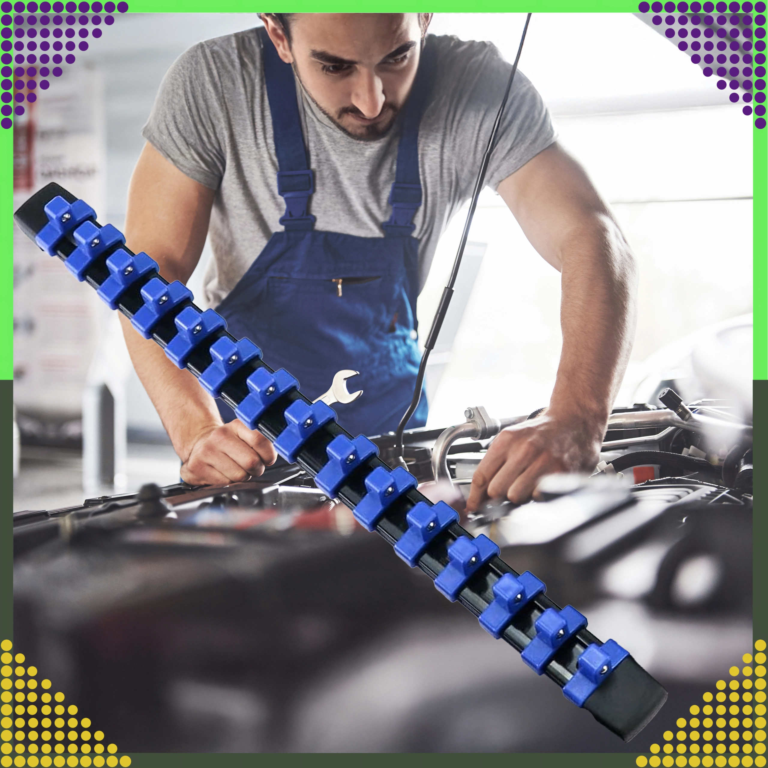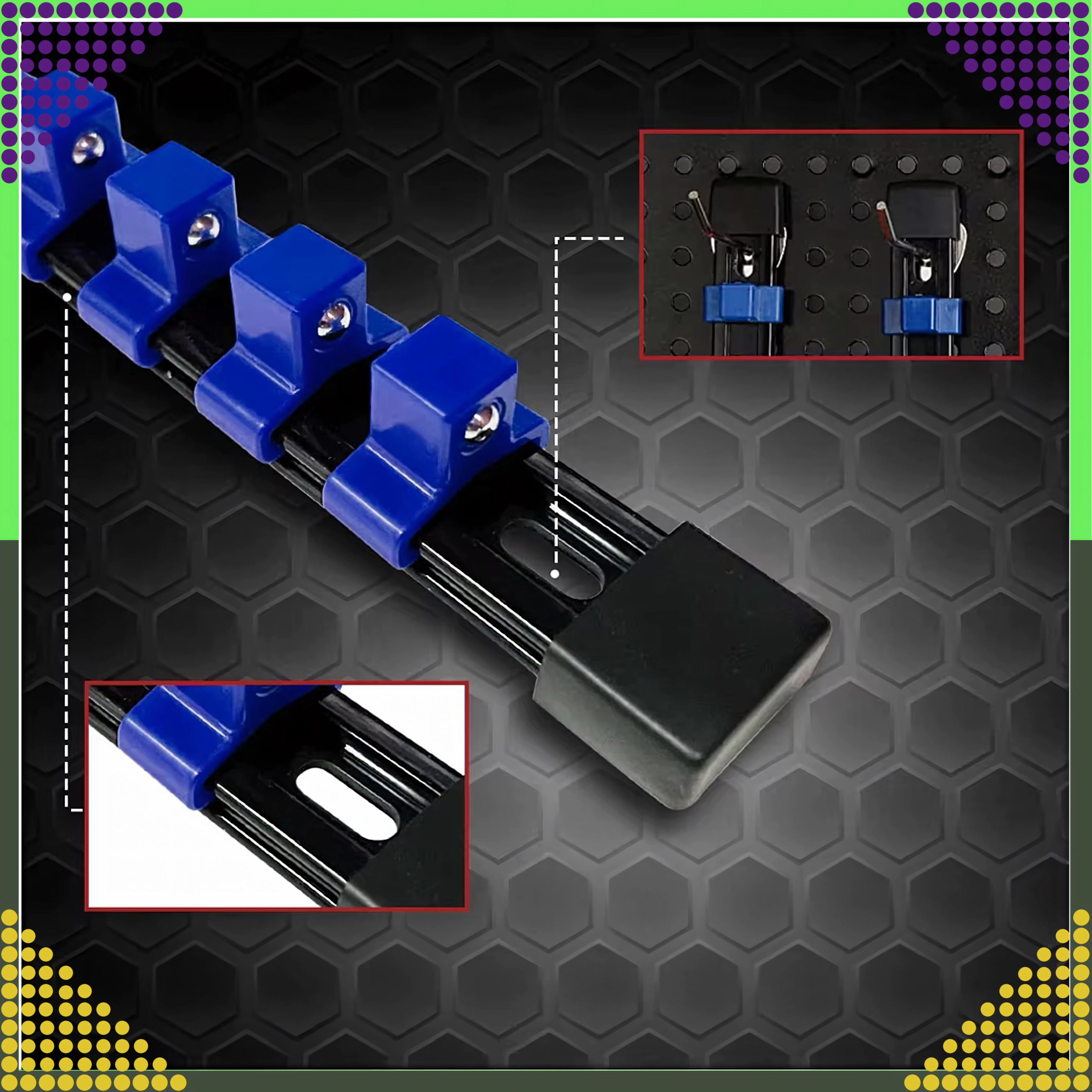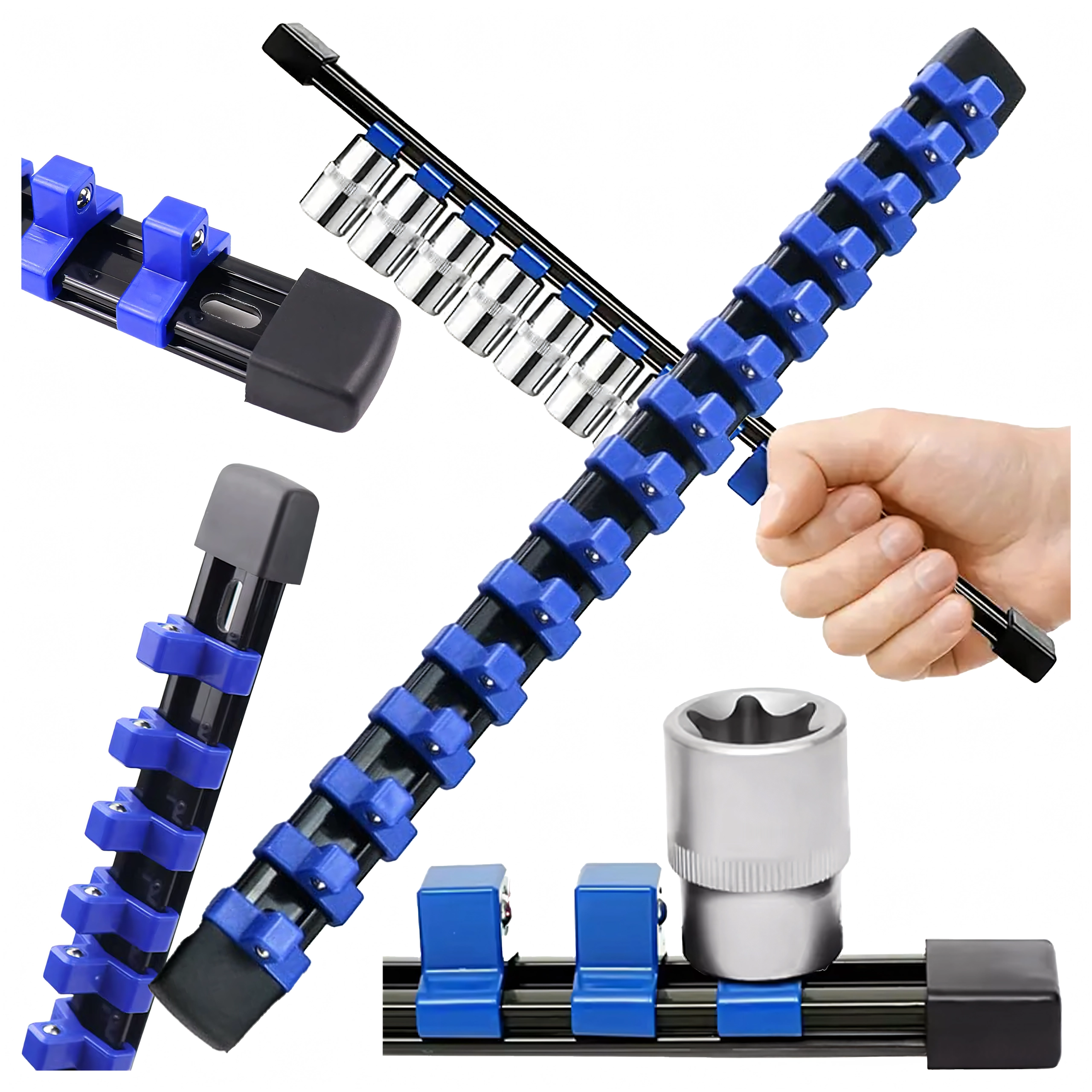 De organizer is ideaal voor monteurs, doe-het-zelvers en servicetechnici die snelle oriëntatie en betrouwbare fixatie van het gereedschap eisen. Verstelbare clips maken het eenvoudig om de onderlinge afstand aan te passen aan de maat van de doppen.