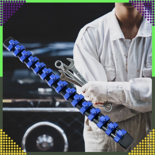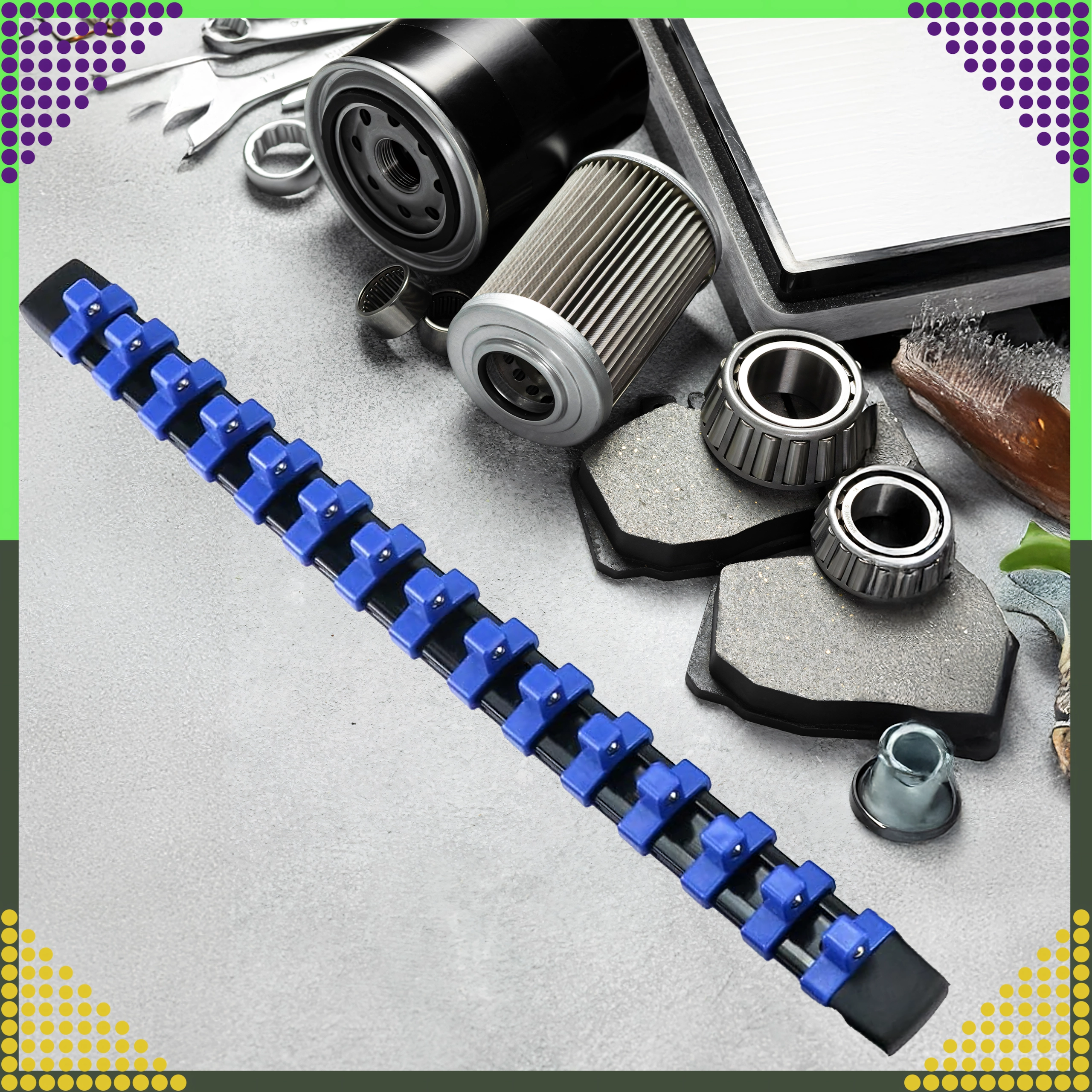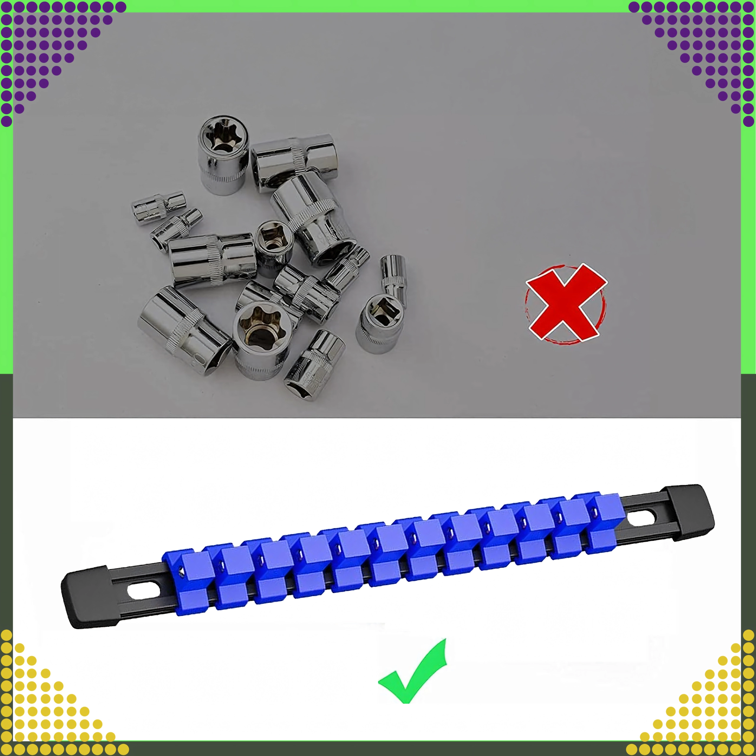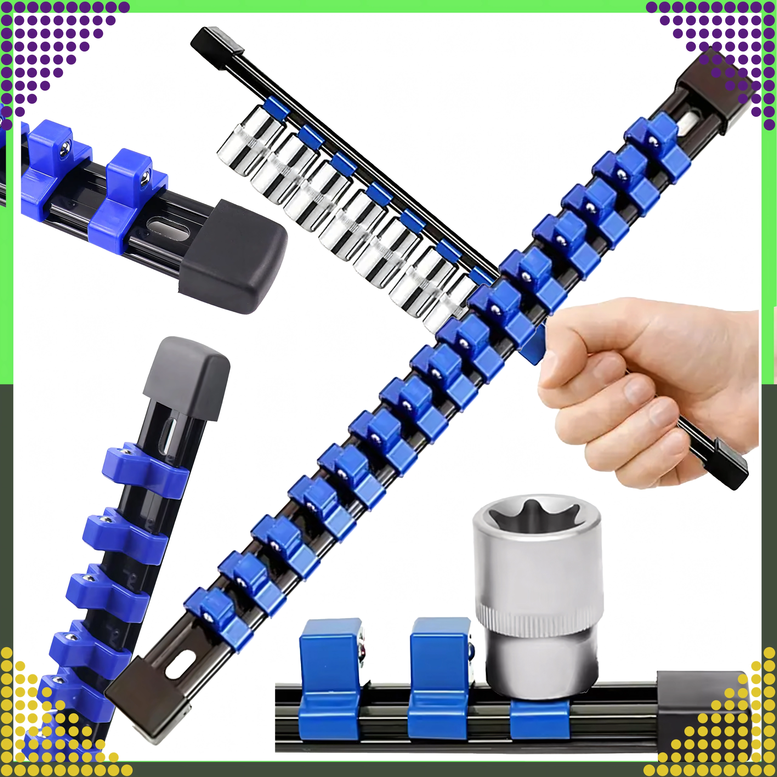 De organizer is ideaal voor monteurs, doe-het-zelvers en servicetechnici die snelle oriëntatie en betrouwbare fixatie van het gereedschap eisen. Verstelbare clips maken het eenvoudig om de onderlinge afstand aan te passen aan de maat van de doppen.