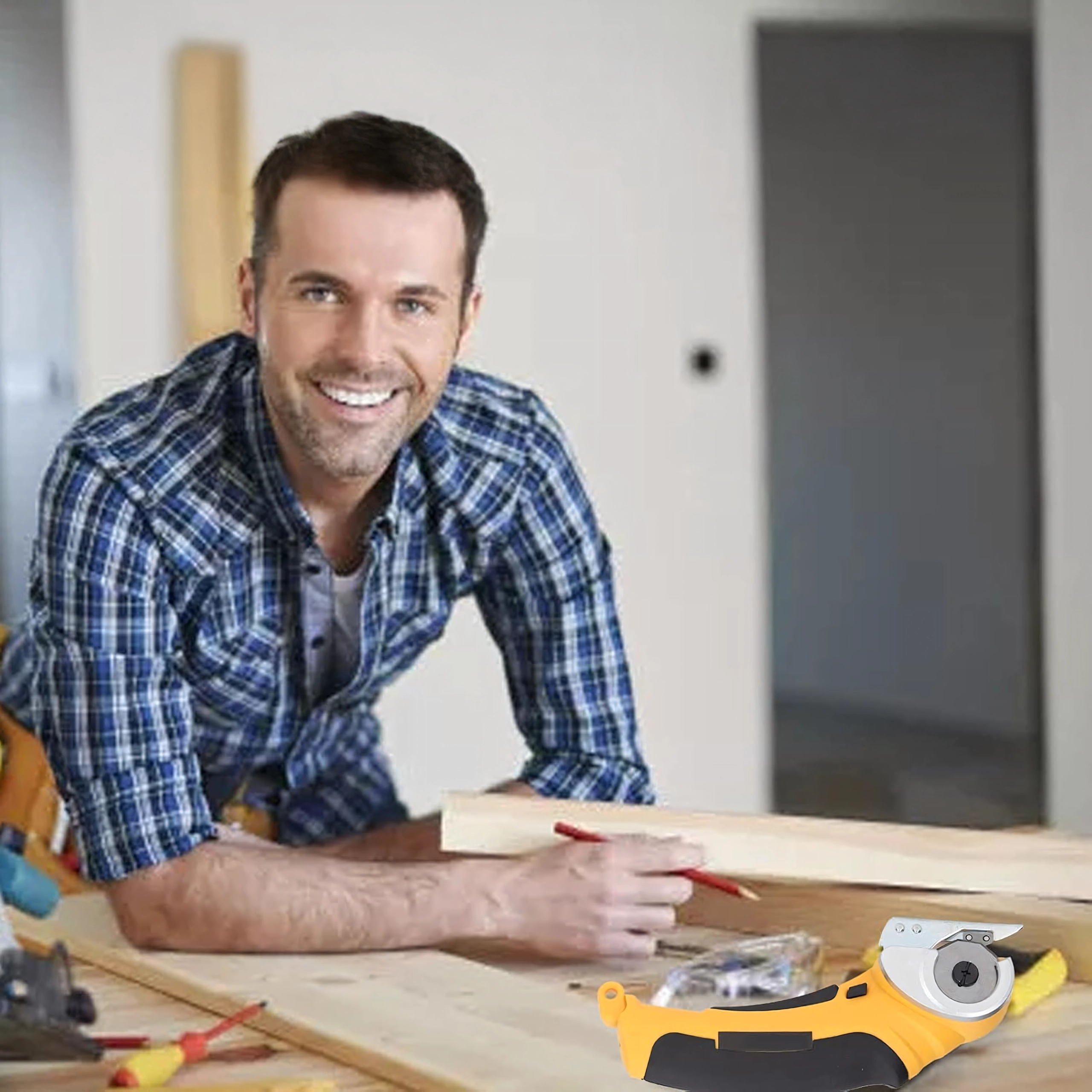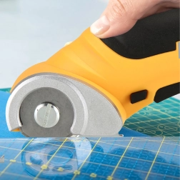 Het ronde mes met beschermkap zorgt voor een gladde en schone snede in textiel, leer en karton. Ideaal voor lange rechte sneden langs een liniaal.