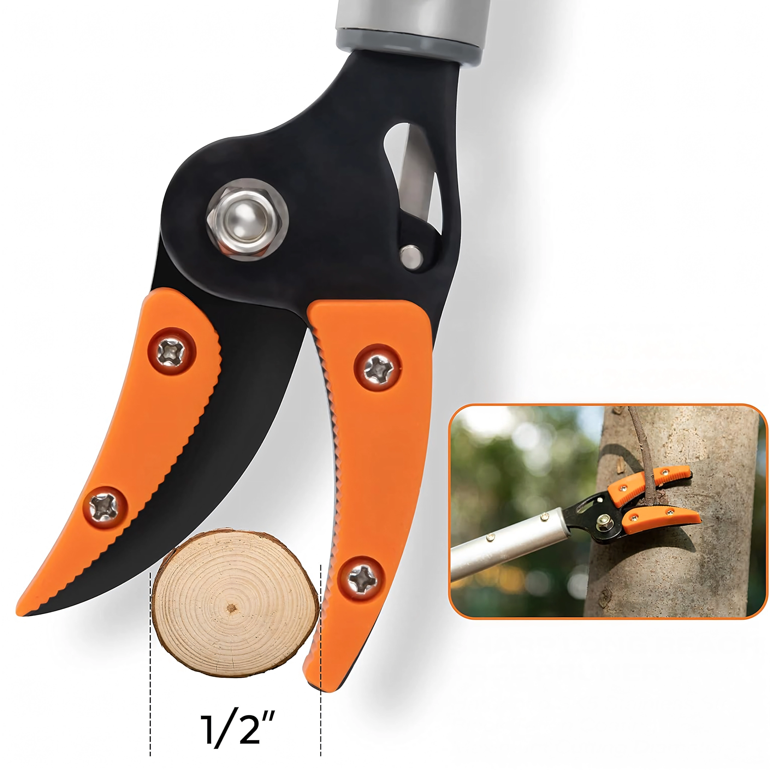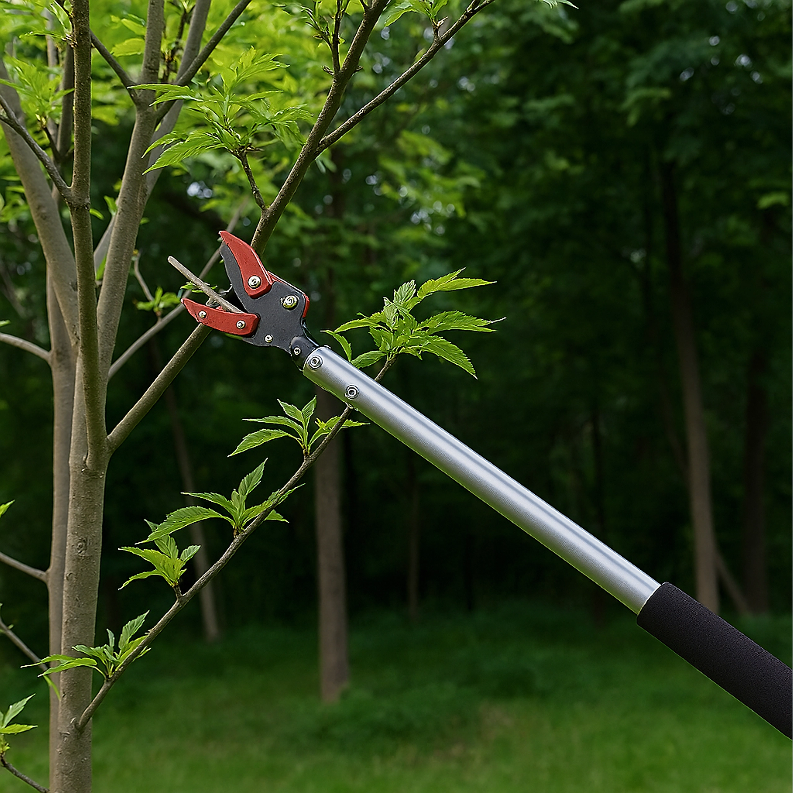 De lengte van 100 cm en de lichte constructie maken het mogelijk om takken te snoeien en fruit veilig vanaf de grond te oogsten.