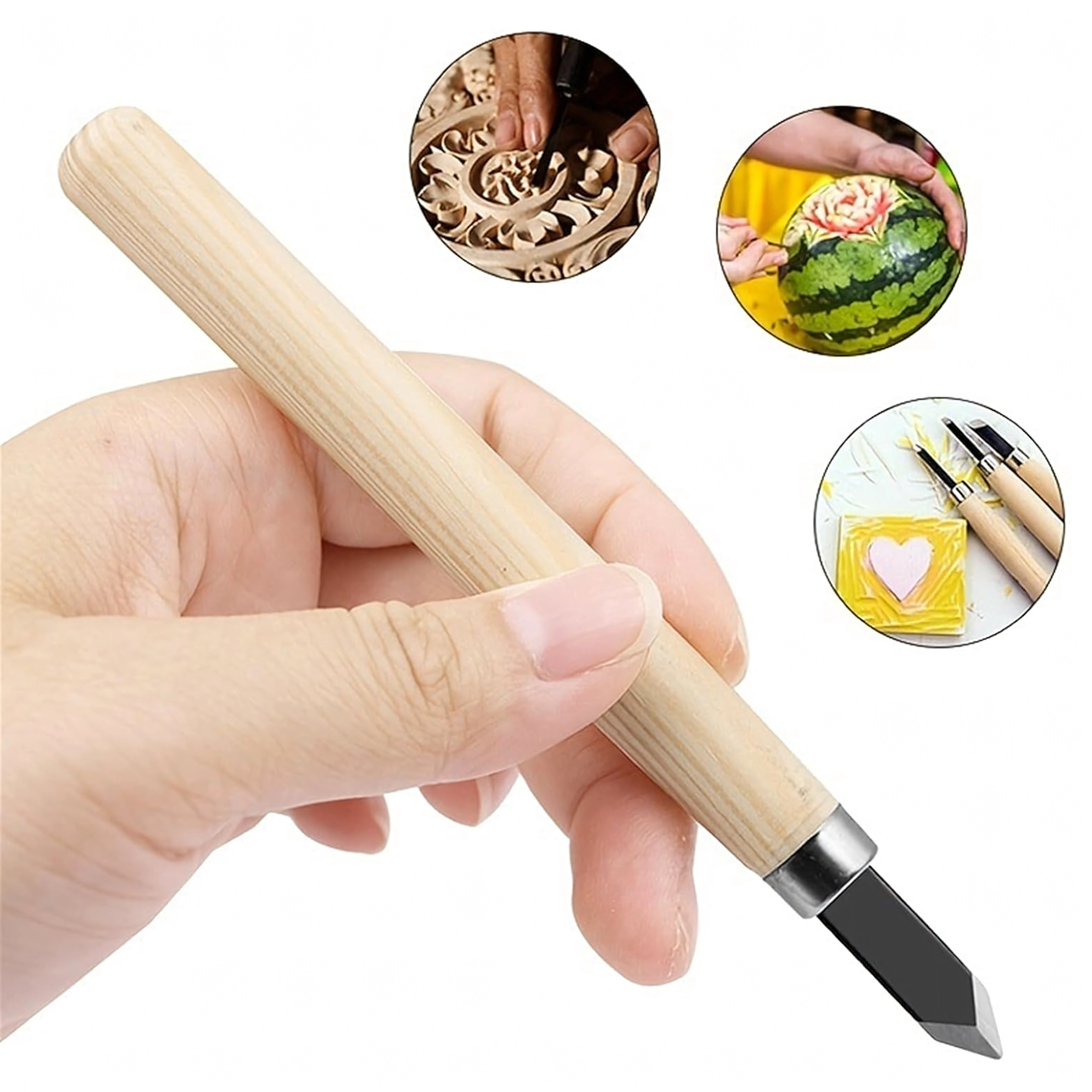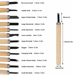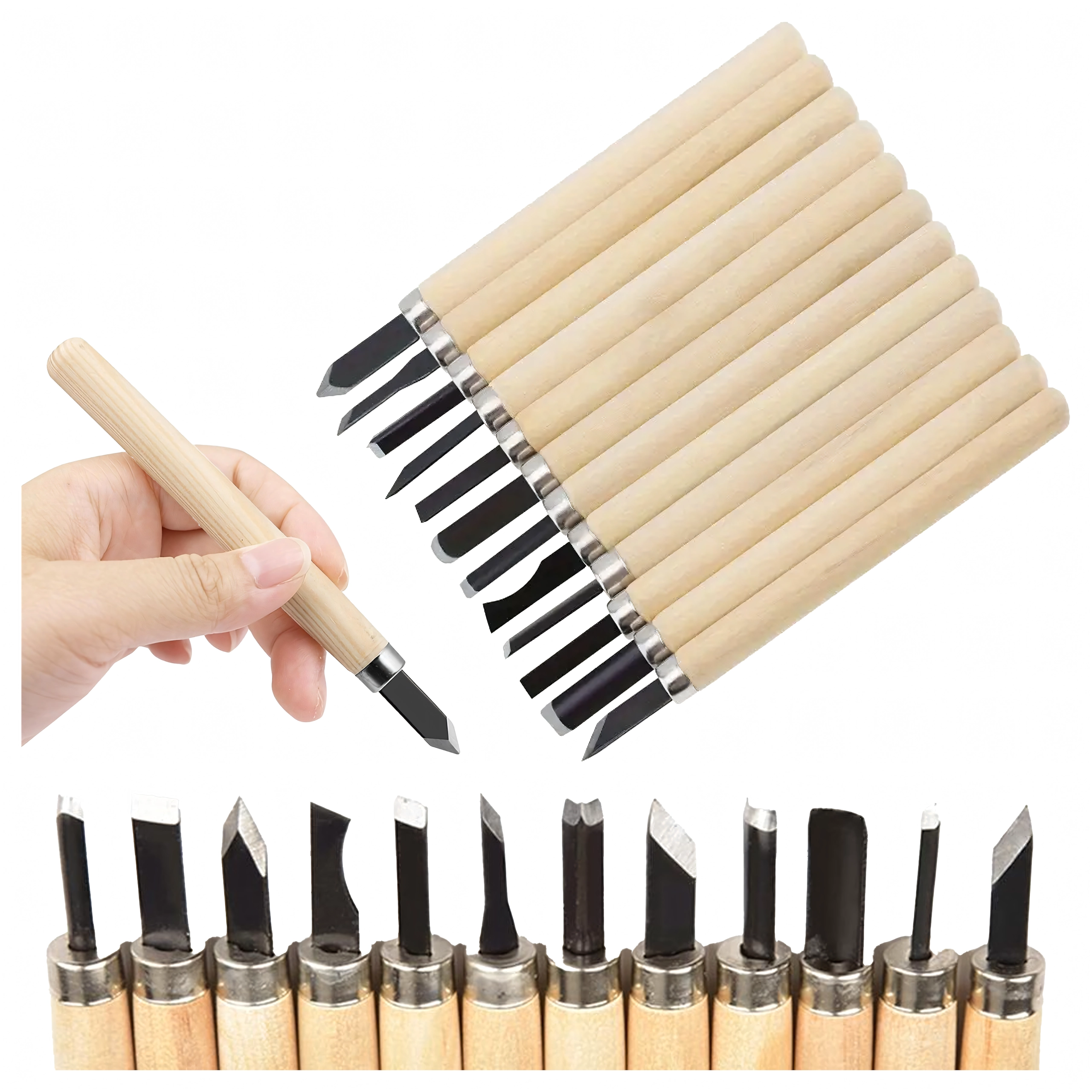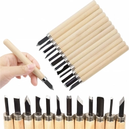 Ideaal voor beginners en gevorderden: van fijn decoreren en het maken van reliëfs tot het creëren van figuren, stempels of decoraties. Dankzij de verschillende bladvormen beheerst u precisie-sneden, V-groeven, uithollingen en vlakke insnijdingen in hout, linoleum en andere zachte materialen.