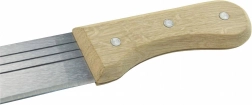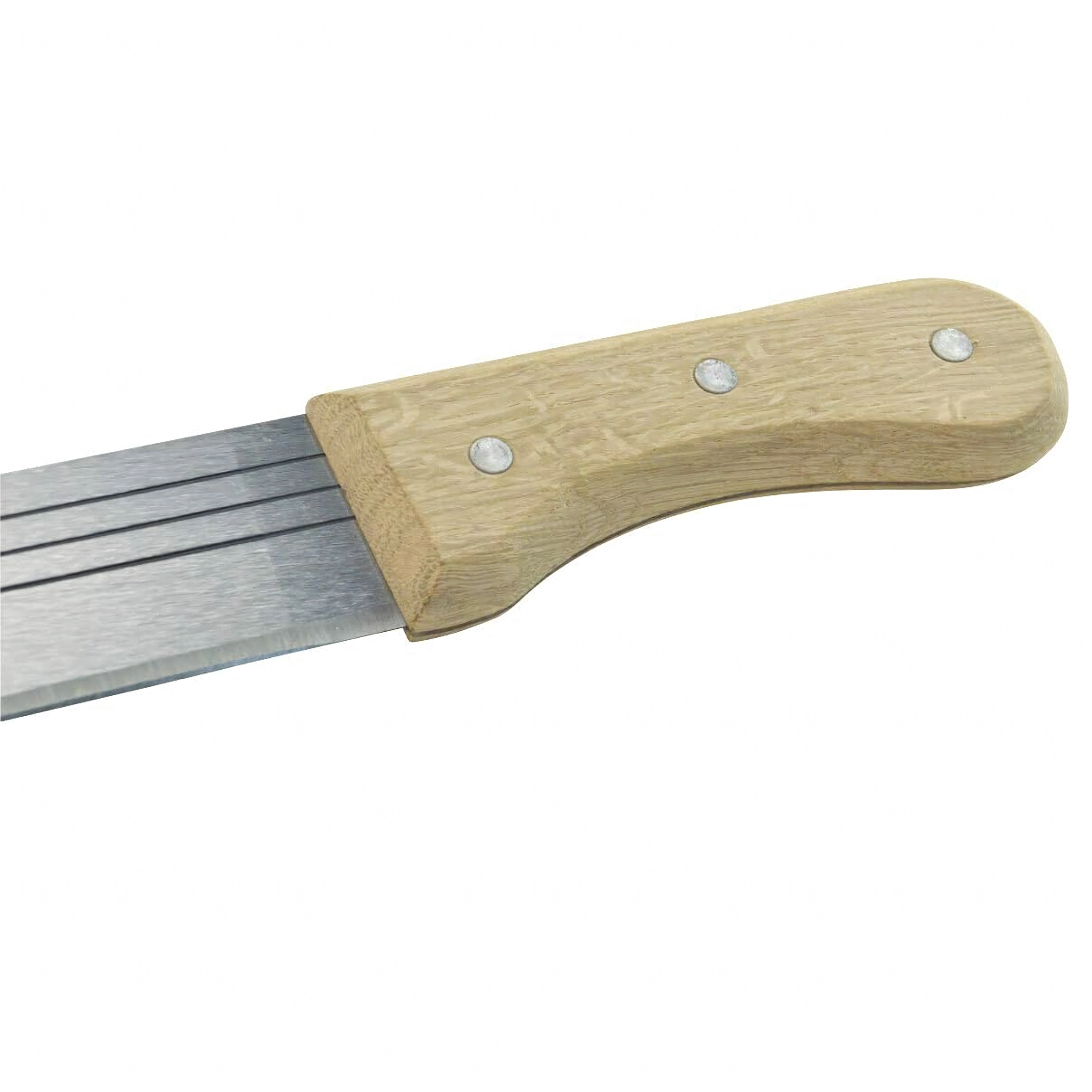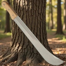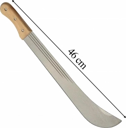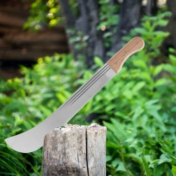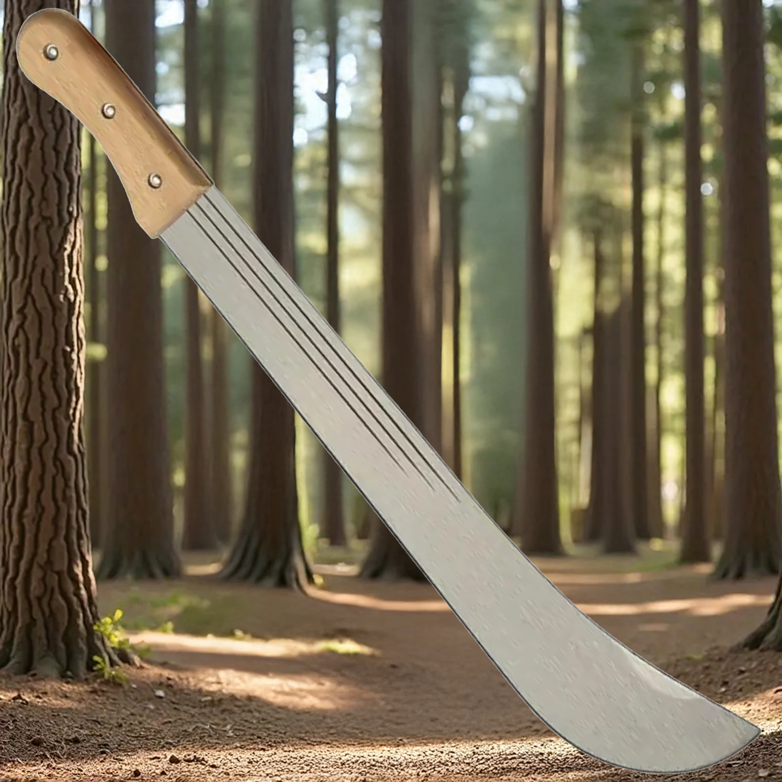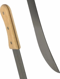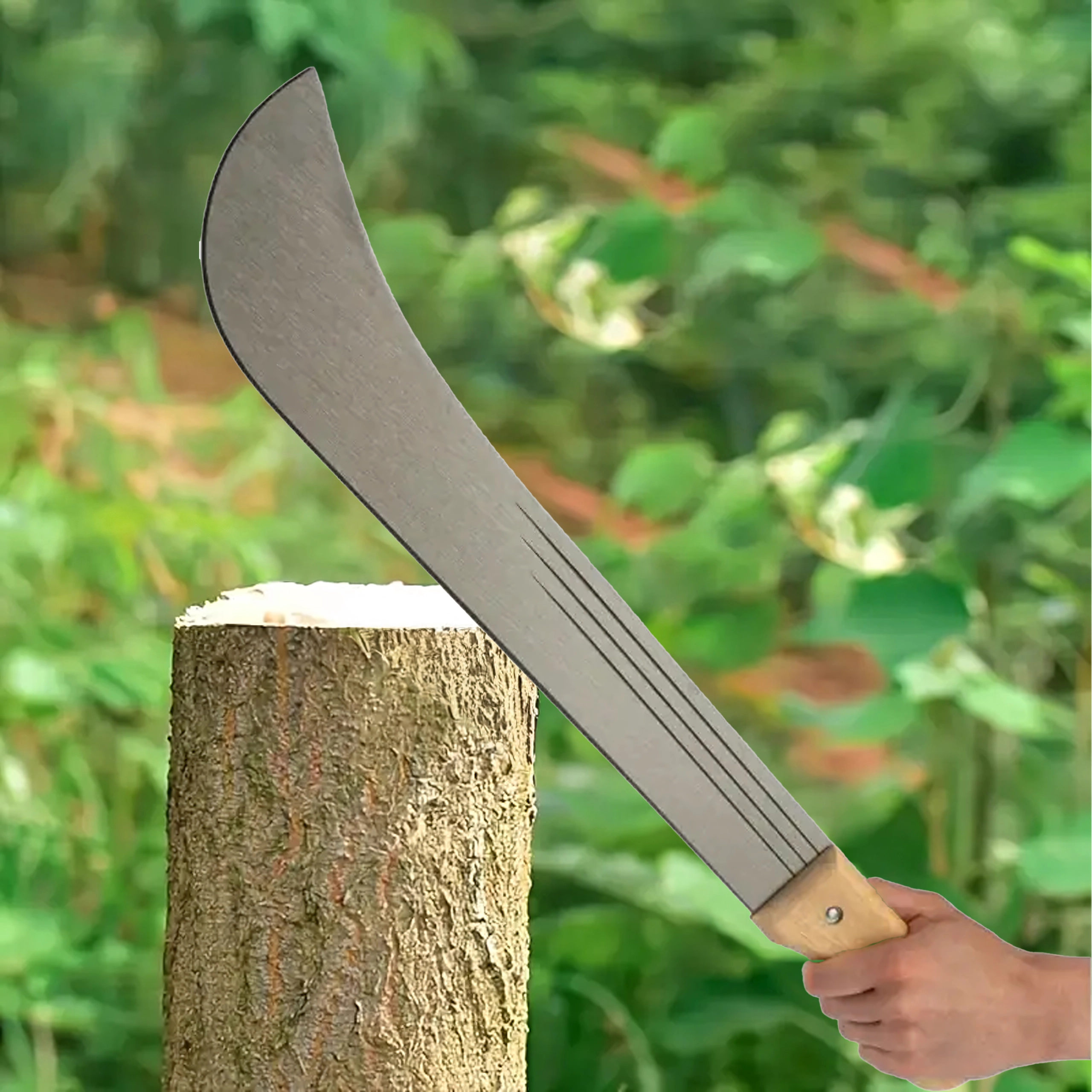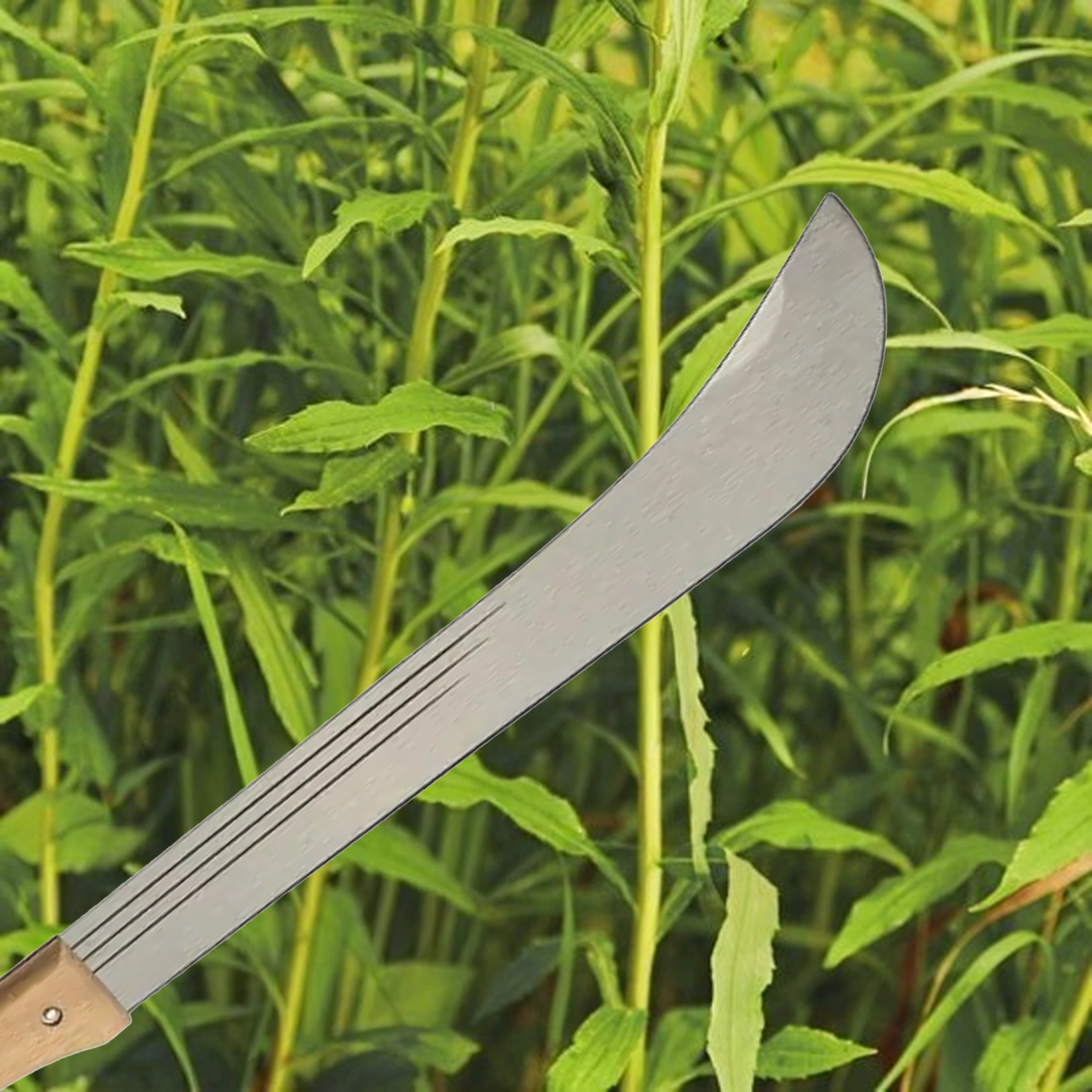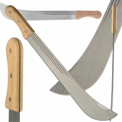 Deze geharde machete combineert een lang, gebogen lemmet van kwaliteitsstaal met een comfortabel houten handvat voor een zekere grip. Dankzij de uitgebalanceerde constructie biedt hij een soepele en efficiënte snede bij het doorhakken van dicht struikgewas, het verwijderen van opslaghout of het snel vormgeven van begroeiing.