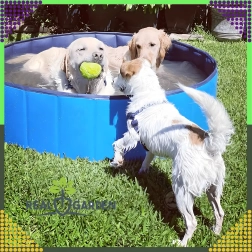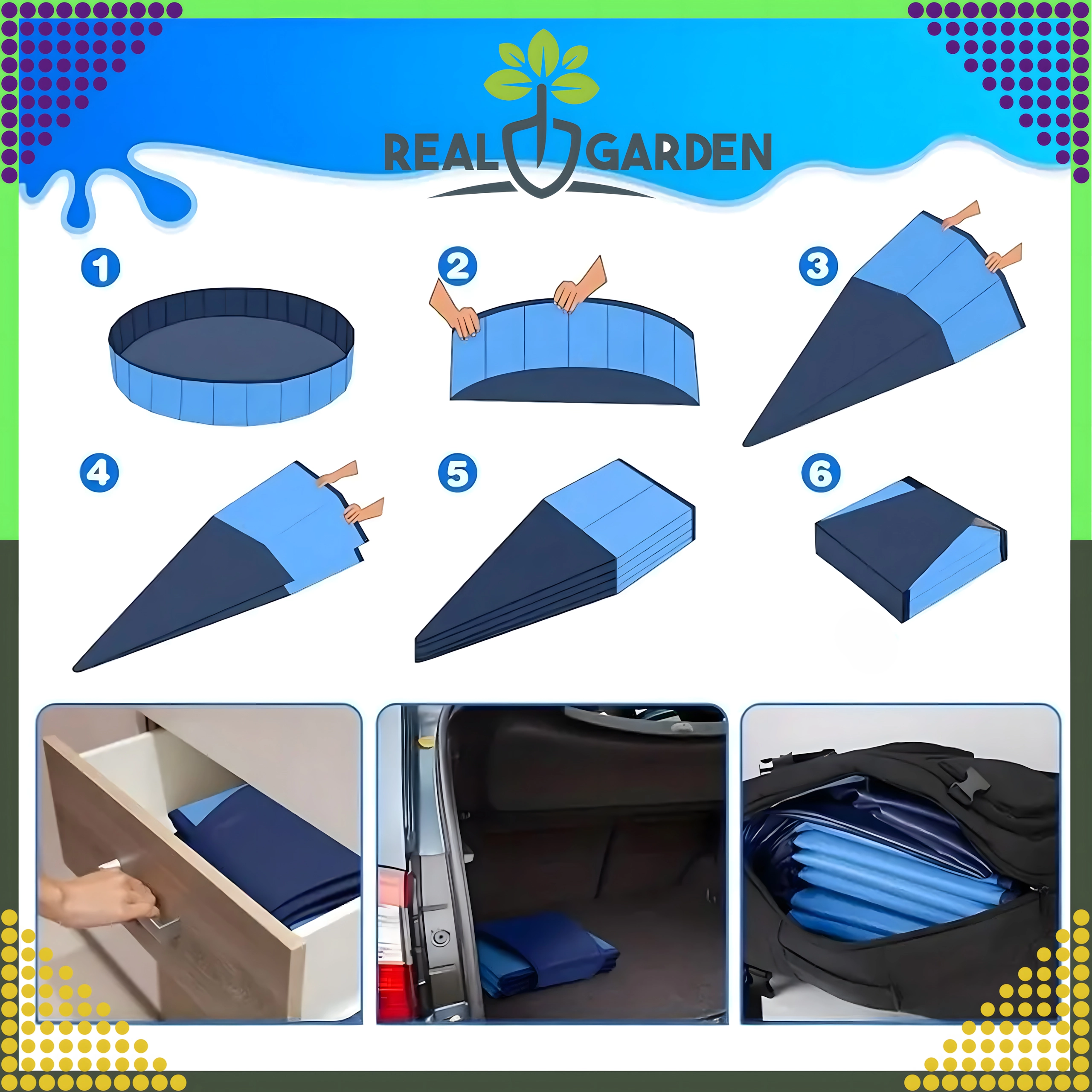 Het opvouwbare hondenzwembad is perfect voor zomerse verkoeling, snel pootjes wassen en leuke waterspelletjes. Dankzij het robuuste PVC-materiaal behoudt het zijn vorm zonder pompen en is het bestand tegen normaal gebruik door huisdieren.