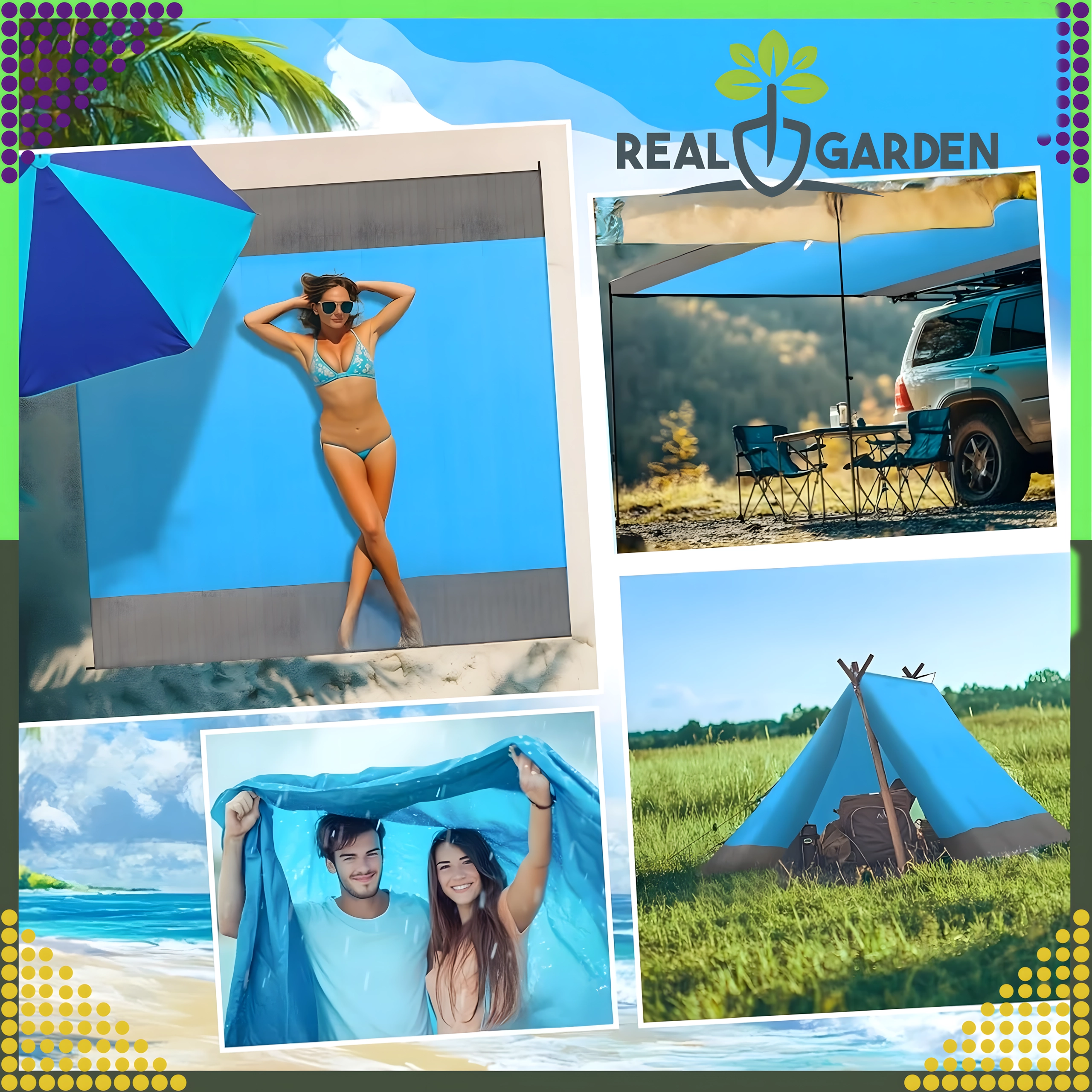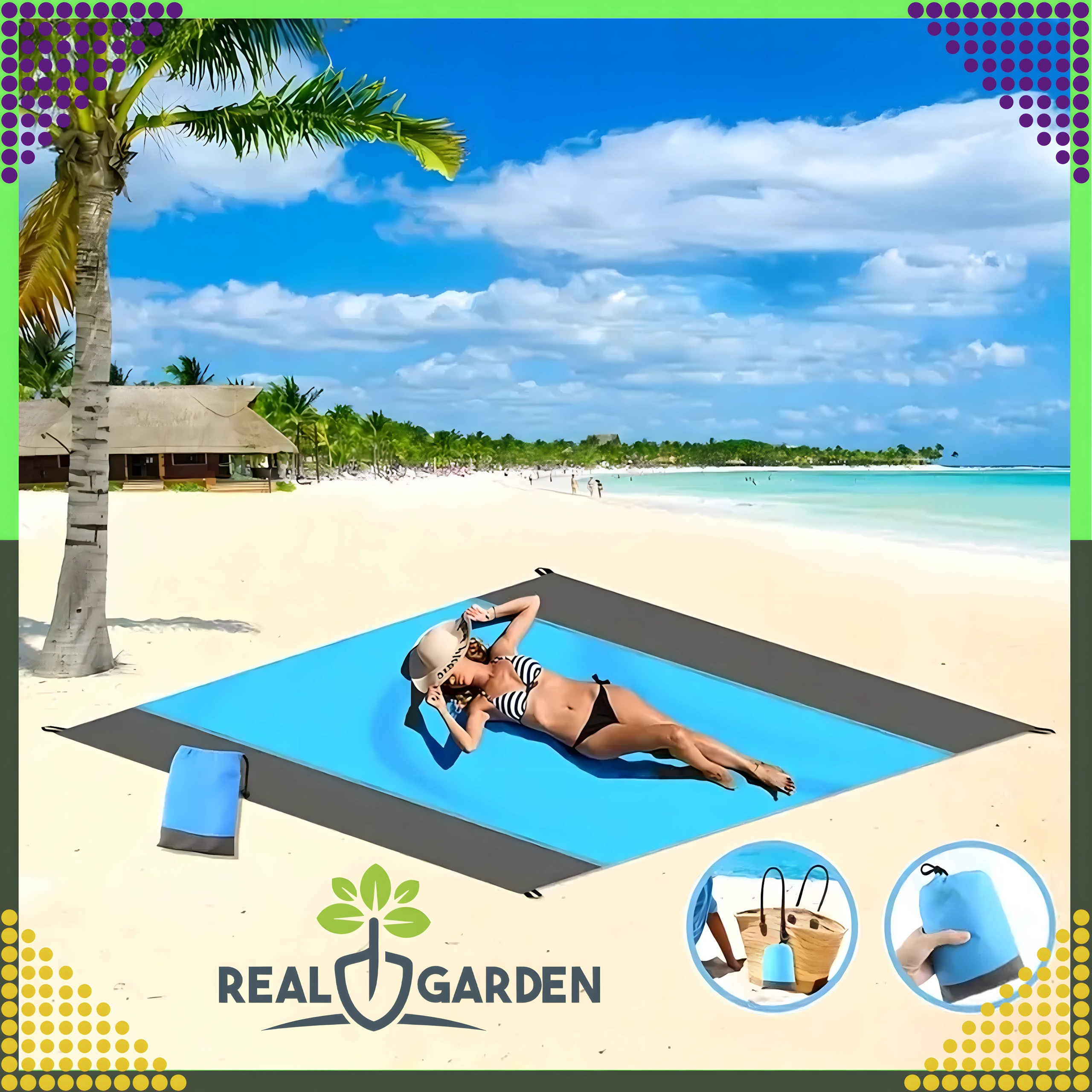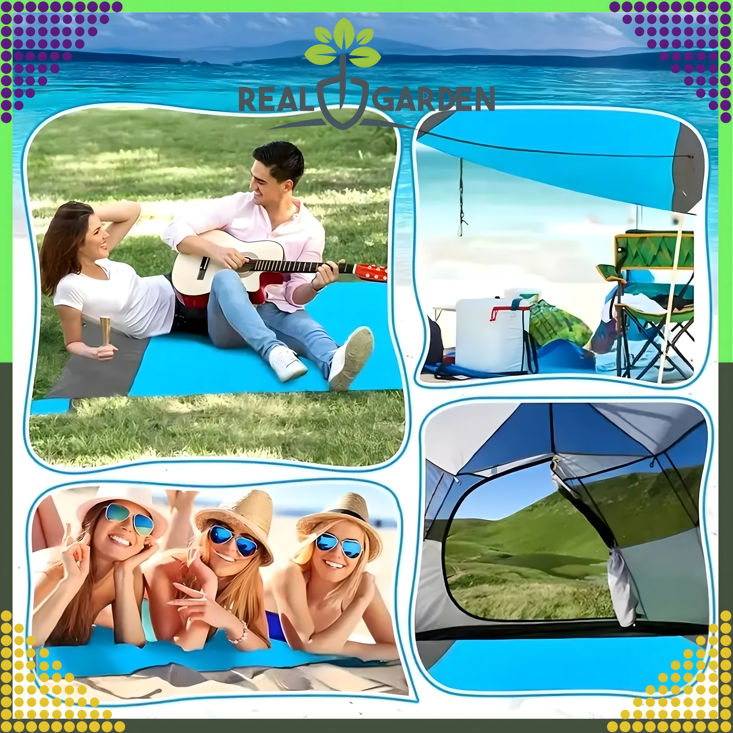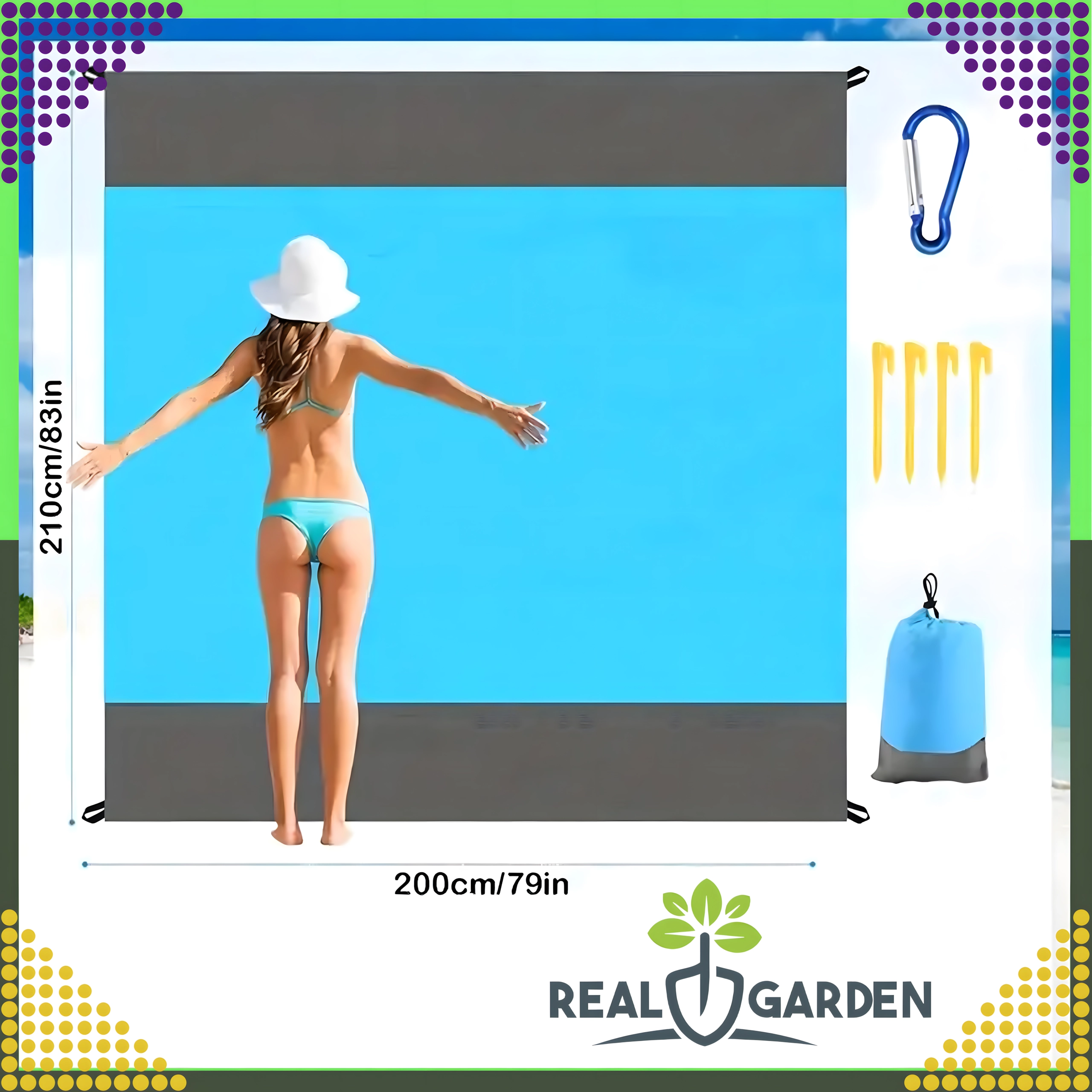 Praktische en comfortabele strand-/picknickdeken van 210 × 200 cm, ideaal voor strand, picknick en kamperen. Hij is waterdicht, licht, makkelijk opvouwbaar en blijft dankzij haringen/bevestiging stevig op zijn plek. Inclusief een praktische hoes. De deken beschermt tegen vocht, is eenvoudig te reinigen en biedt comfortabel plaats aan het hele gezin.