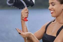 Dankzij het volume van 20 liter biedt hij voldoende water voor meerdere korte douches. De douche heeft een versterkte ophanglus voor veilige bevestiging aan een tak, haak of touw en een doucheslang met uiteinde voor comfortabel regelen van de waterstroom. Na het leeglaten vouwt hij plat op en neemt hij weinig ruimte in in de rugzak.