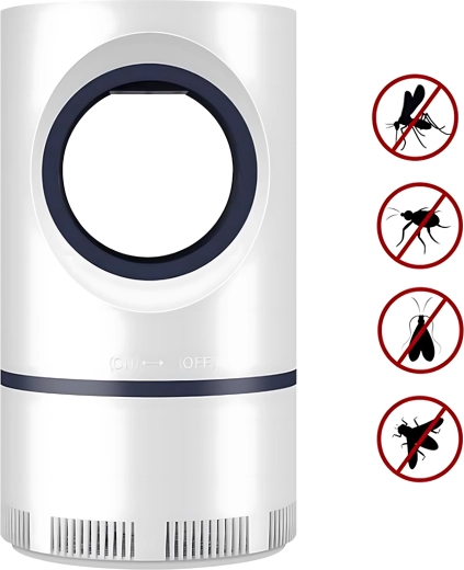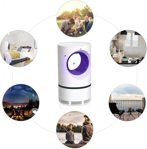 Stille en veilige UV-insectenvanger voor thuis en buitengebruik. Zonder chemicaliën en geur, lokt muggen en vliegen met UV-licht en de ventilator zuigt ze in de opvangbak. Dankzij de USB-voeding te gebruiken in de slaapkamer, keuken, op het balkon, in de tuin en in de tent. Veilig voor kinderen en huisdieren.