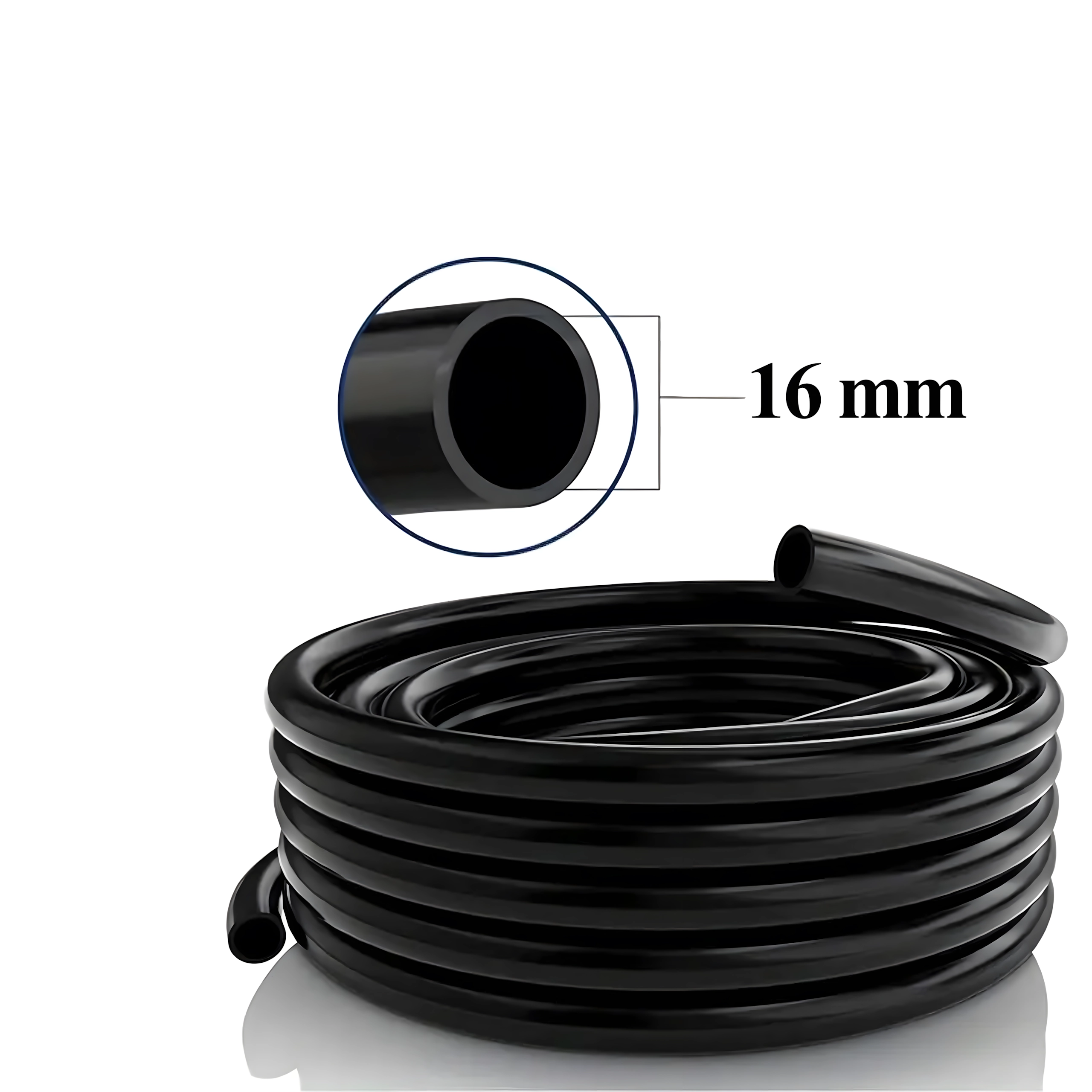 Dankzij het flexibele materiaal is de slang eenvoudig te vormen, UV-bestendig en bestand tegen normale weersinvloeden. De installatie is snel met standaard 16 mm koppelingen en accessoires voor micro-irrigatie.