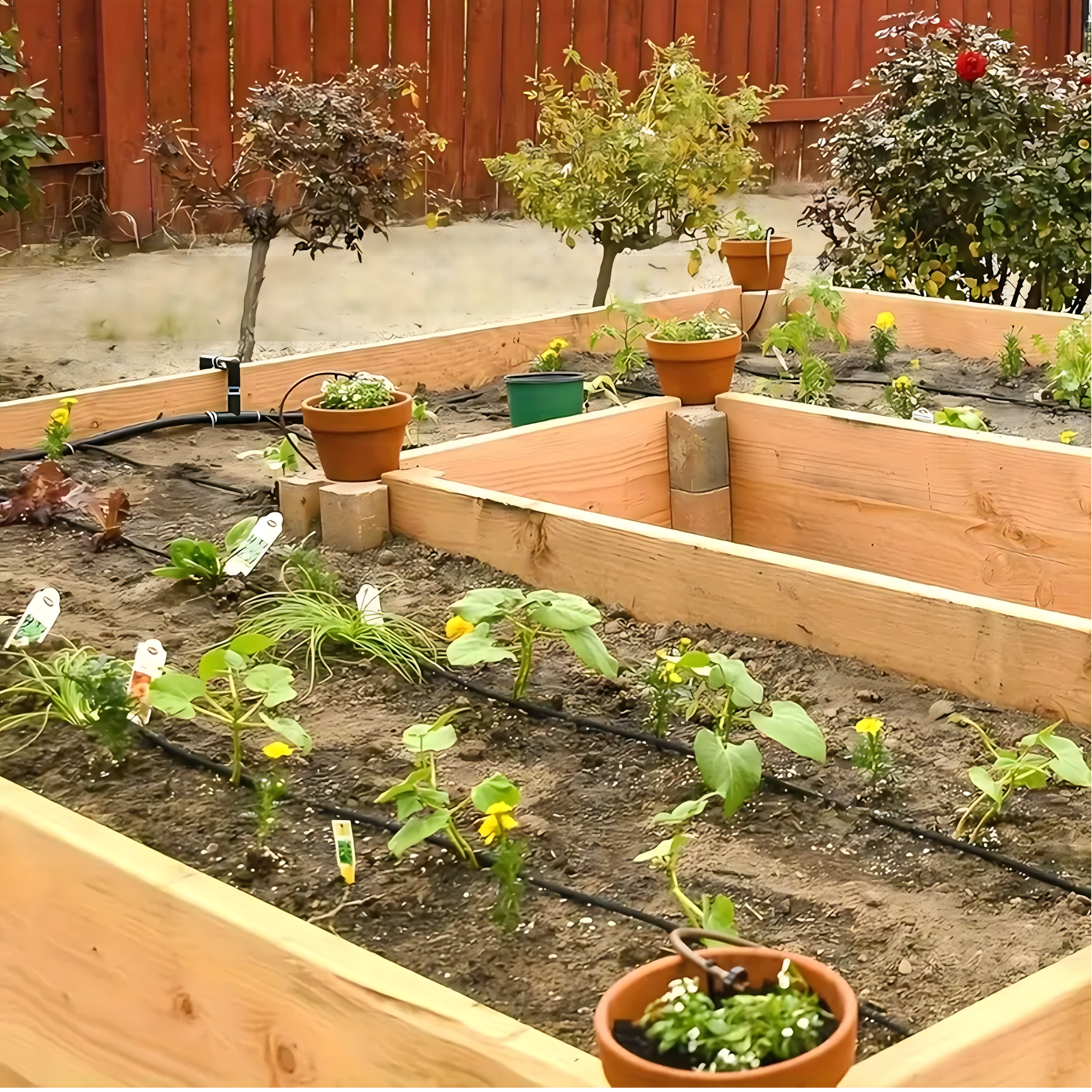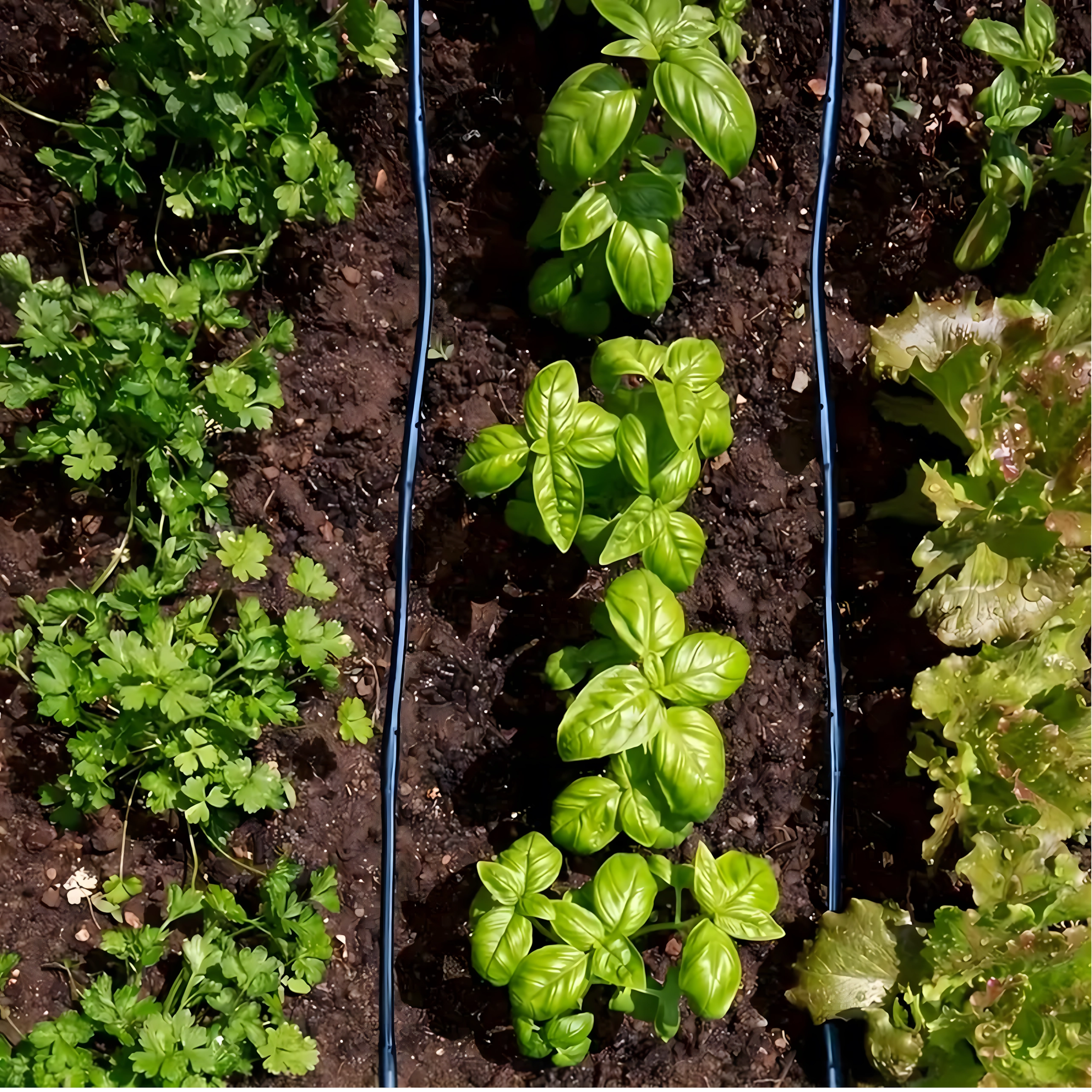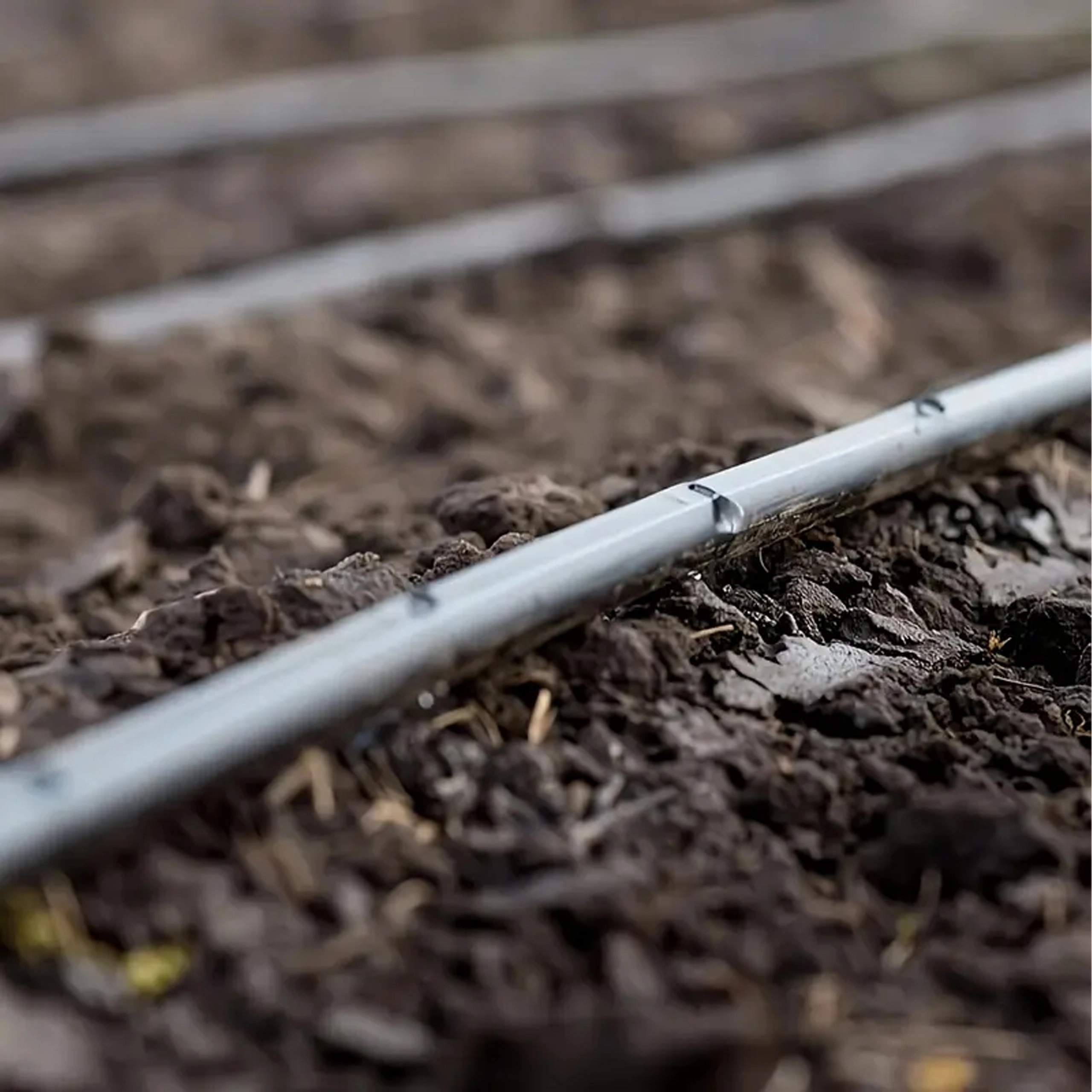 De druppelslang brengt water precies daar waar de planten het nodig hebben. Minimaliseert verdamping en bevordert een gezonde groei van zowel gewassen als sierplanten.
