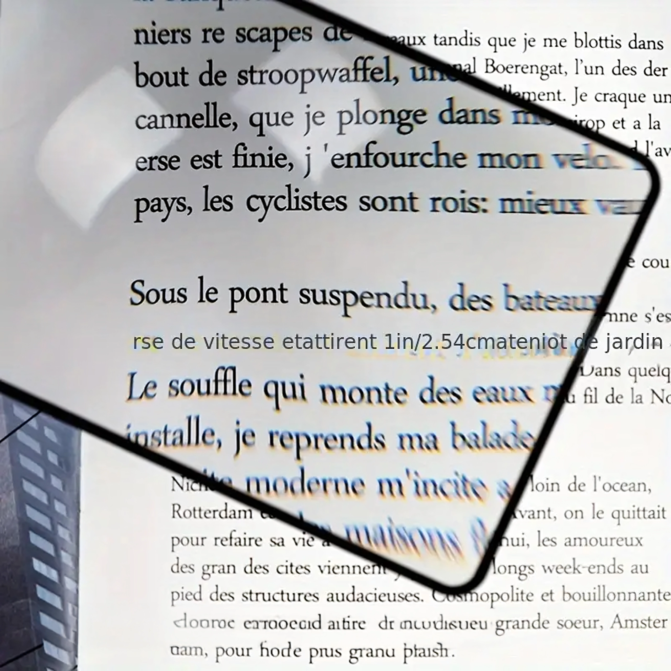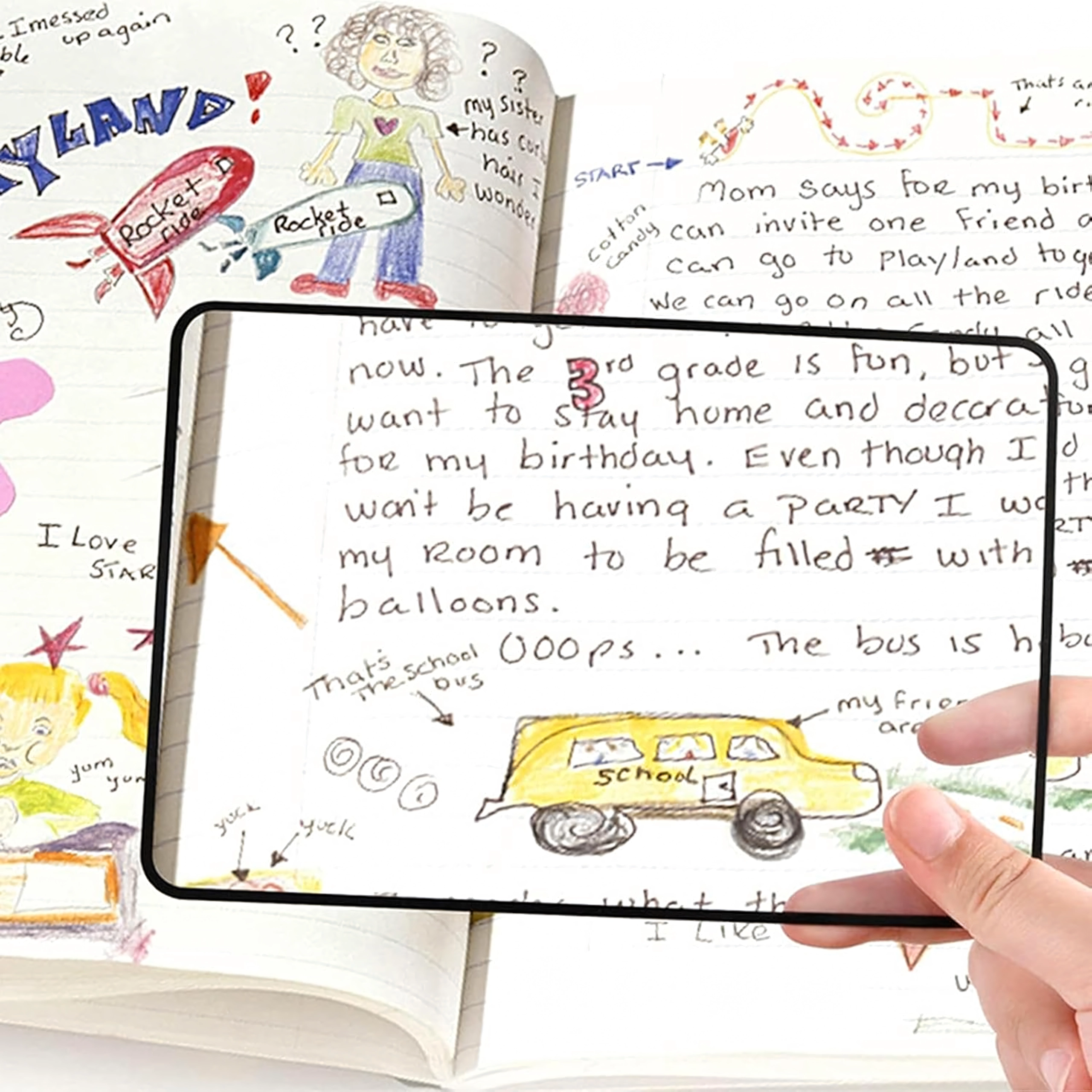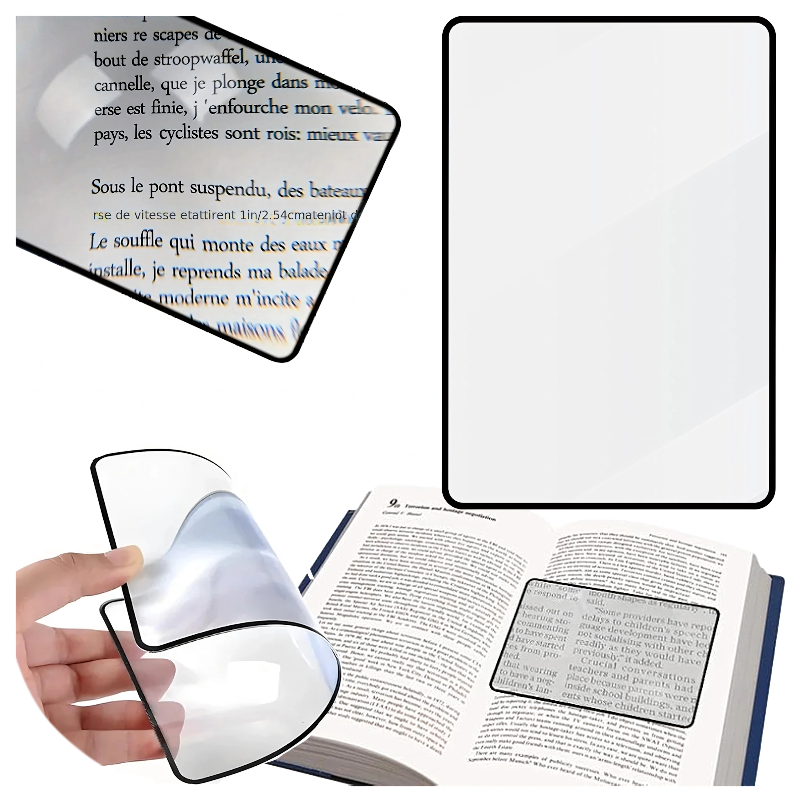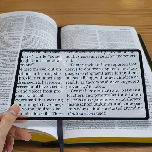 Praktische paginaloupe met een flexibele kunststof lensplaat vergroot tekst en details tot 200%. Dankzij het slanke ontwerp met lichte rand ligt hij prettig in de hand, kunt u hem direct op de pagina leggen en lezen zonder uw ogen te vermoeien.