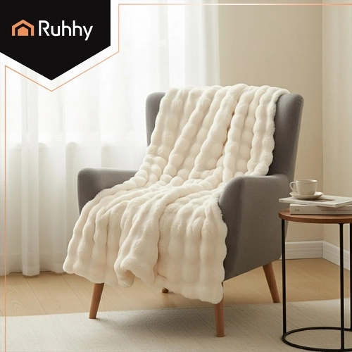 Geniet van direct comfort met de zachte en knuffelige RUHHY-plaid in tijdloos wit. Hij is licht, warm en buitengewoon aangenaam om aan te raken. Dankzij de dubbel-laagse constructie – bovenzijde als konijnenvacht-look en onderzijde zacht pluche – biedt hij maximaal comfort. Eenvoudig te onderhouden in de wasmachine op 30 °C, pillingbestendig en met een stylische uitstraling is het de ideale toevoeging aan zowel slaapkamer als woonkamer.