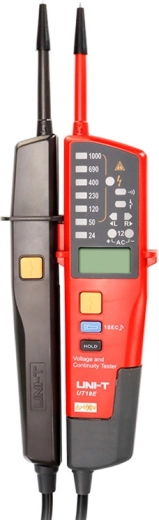 De UNI-T UT18E is een betrouwbare twee-polige tester voor elektriciens en veeleisende doe-het-zelvers. Hij maakt nauwkeurige metingen mogelijk van wissel- en gelijkspanning 6–1000 V met duidelijke LED-bereikindicatie en een goed afleesbaar LCD. Dankzij fasenvolgordedetectie, RCD-test 230 V en continuïteitscontrole 0 Ω–60 kΩ dekt hij de belangrijkste behoeften bij installatie en service.