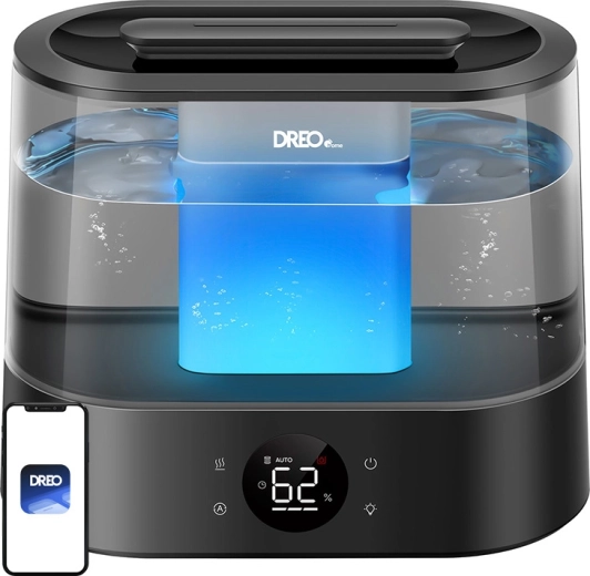 Het apparaat is te bedienen via de mobiele DREO-app en met spraak, je kunt schema’s instellen, modi wijzigen en de luchtvochtigheid in realtime volgen. Bovenvulling maakt onderhoud eenvoudig, speciale beschermingsfuncties voorkomen vochtschade aan de elektronica en de lekbestendige constructie beschermt je huis.