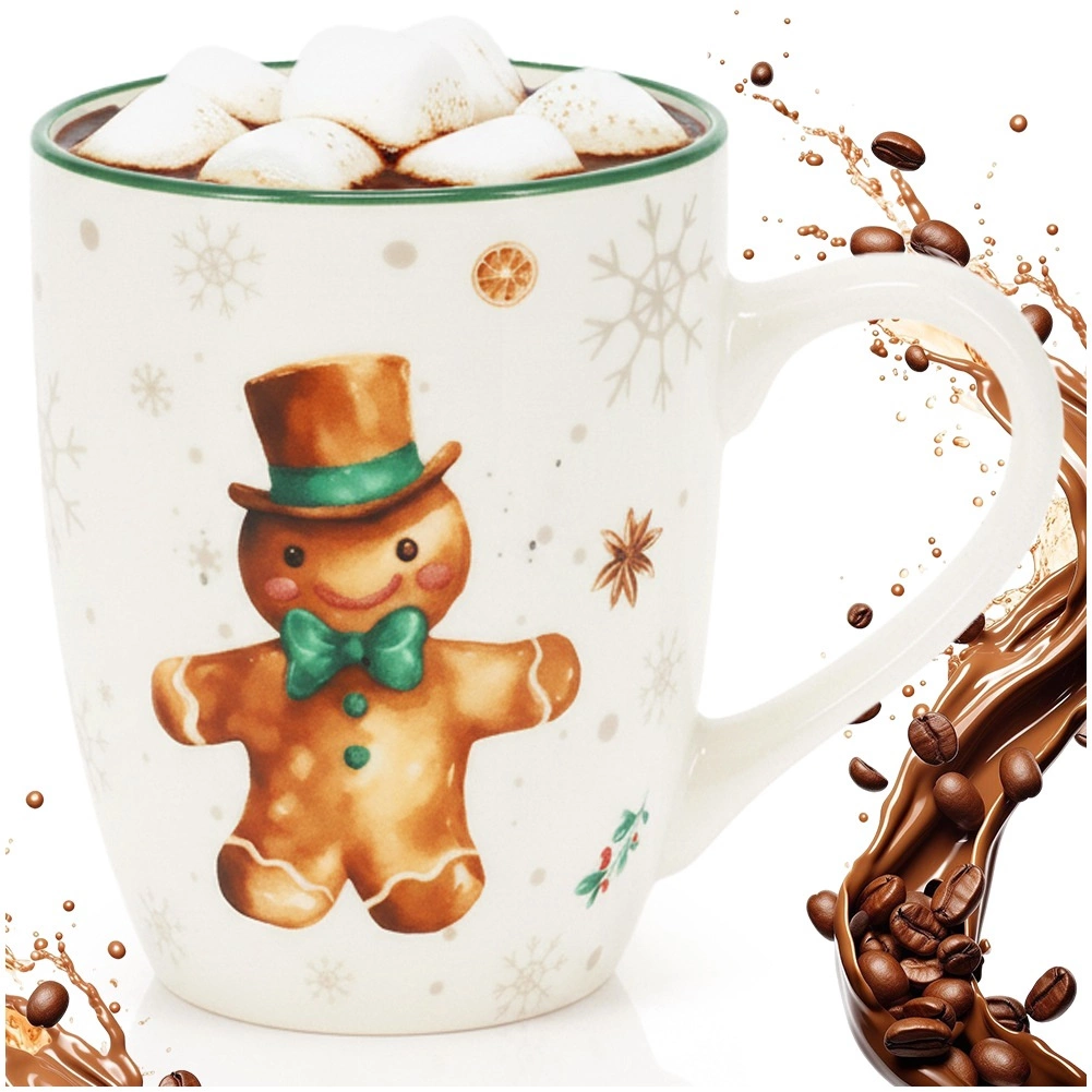Het schattige motief met een peperkoekmannetje en sneeuwvlokken met groene bies zorgt bij elke slok voor een feestelijke sfeer.