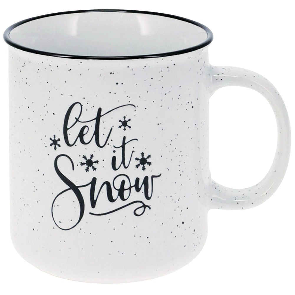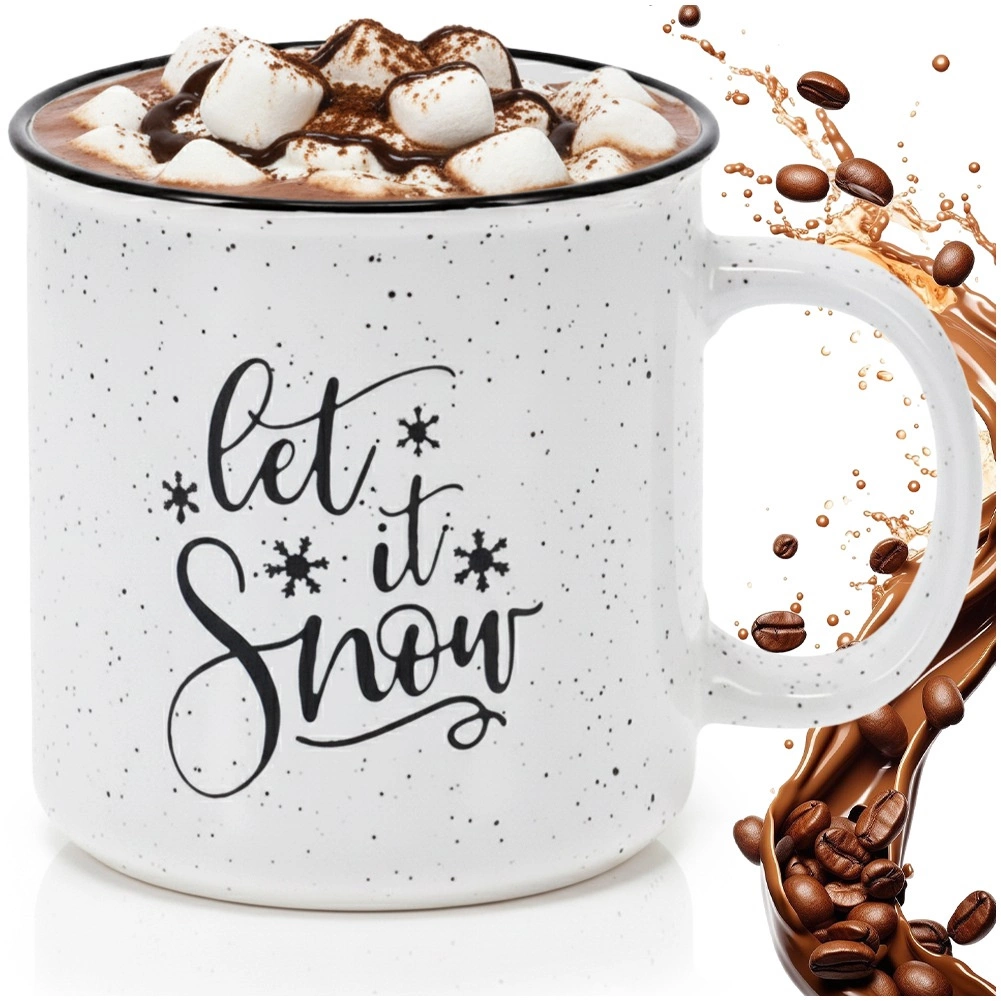 Ontdek het comfort van een grote inhoud in een elegant winterdesign. De steengoeden mok met de tekst Let it Snow en subtiele spikkels is ideaal voor lange winteravonden – hij houdt je drankje langer warm en dankzij de brede rand drinkt hij prettig.
