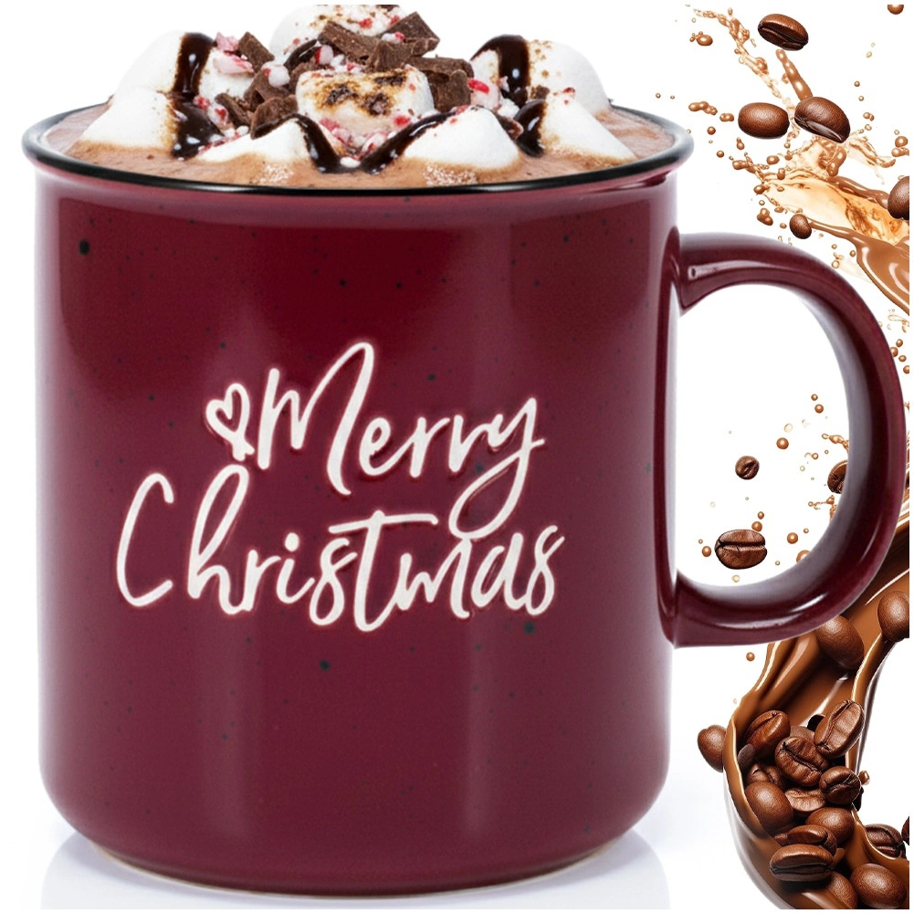 Deze ruime steengoed mok brengt een feestelijke sfeer in huis. Dankzij het volume van 700 ml is hij perfect voor grote porties winterdranken – van aromatische thee en geurige koffie tot romige warme chocolademelk. Het glanzende oppervlak, het contrasterende witte interieur en de verhoogde tekst Merry Christmas zorgen voor een elegant en tijdloos design.
