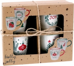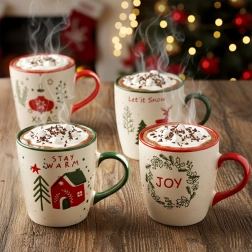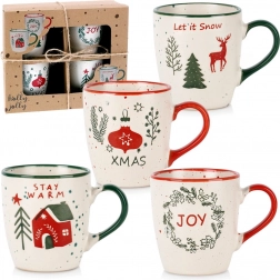 Geniet van winterse momenten met mokken die al bij de eerste aanblik warmte brengen. Het aardewerk met rode en groene accenten oogt knus en feestelijk, terwijl het ergonomische oor zorgt voor comfortabel vasthouden bij het drinken van koffie, thee of warme chocolademelk. Elk stuk heeft een uniek motief, waardoor de set prachtig staat op een gedekte tafel of als decoratie.