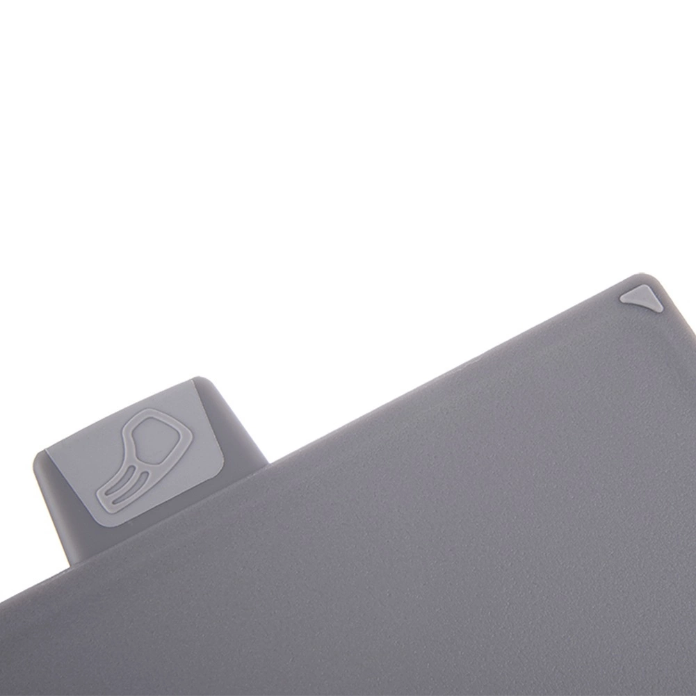Neemt geen geuren of kleuren op, de speciale textuur vangt sappen op en antislip punten aan beide zijden zorgen voor zekerheid tijdens het snijden. Vaatwasmachinebestendig.
