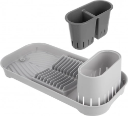 Praktisch afdruiprek, ideaal voor kleinere keukens, appartementen of campers. Biedt overzichtelijk drogen van borden, glazen en bestek en bespaart dankzij de compacte afmetingen ruimte op het werkblad. De uitneembare bestekhouder met twee vakken maakt sorteren en reinigen gemakkelijk.