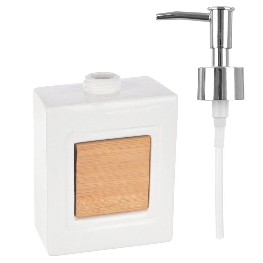 Keramische behuizing met afneembare metalen pomp maakt eenvoudig vullen en schoon doseren van vloeibare zeep of desinfectie mogelijk.