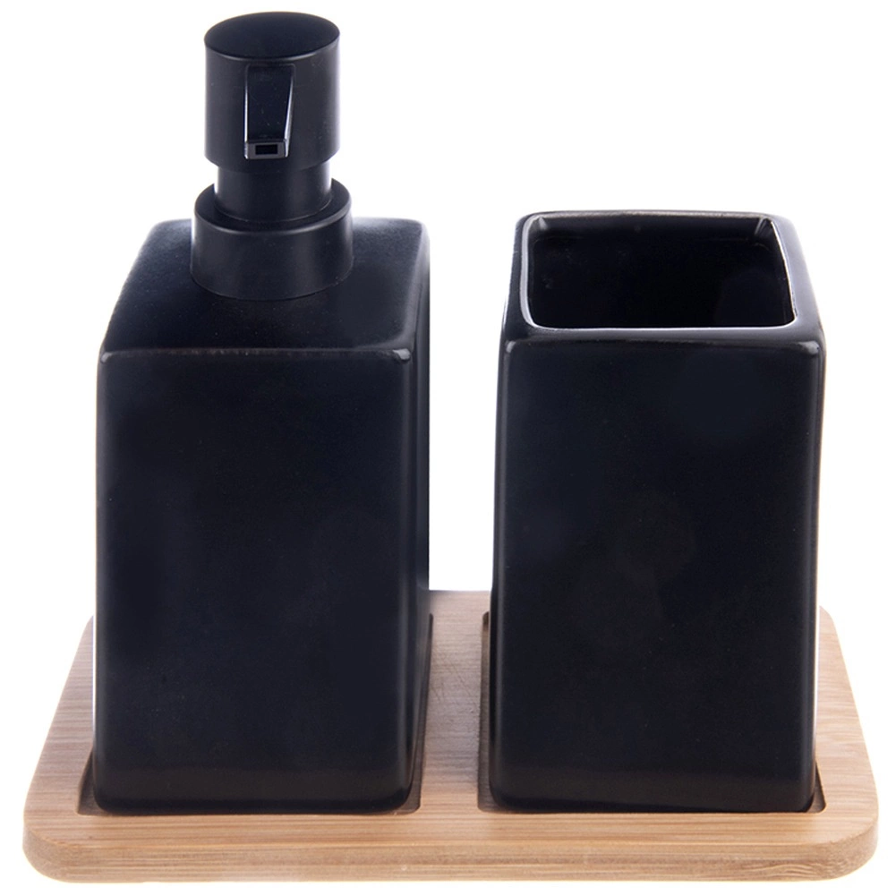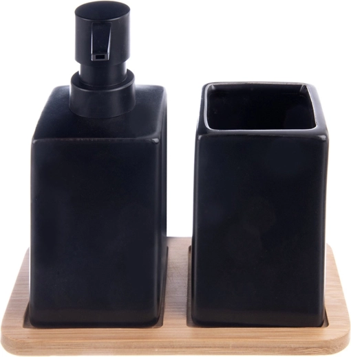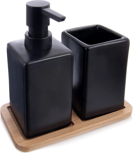 Ontdek de combinatie van functionaliteit en esthetiek: zwart dolomiet met een matte look en natuurlijk bamboe vormen een tijdloos accent voor zowel moderne als klassieke interieurs. De set helpt een schone en overzichtelijke ruimte bij de wastafel te behouden – alles heeft zijn plek en blijft binnen handbereik.