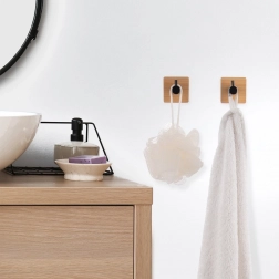Stijlvolle haken met een bamboe basis en een zwarte metalen pen, ontworpen voor dagelijks gemak. Dankzij de zelfklevende achterzijde is de installatie snel en schoon – zonder boren, stof of gereedschap. Het minimalistische design past perfect in moderne interieurs en natuurlijk ingerichte ruimtes.
