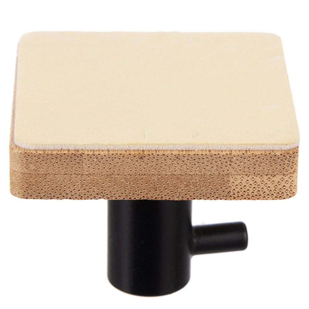 De natuurlijke bamboe basis en zwarte metalen pin vormen een modern accent dat perfect past in badkamer, keuken en entree.