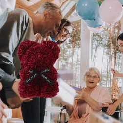 Een elegante strik en zorgvuldige afwerking maken het tot een perfect verrassingscadeau voor jubilea, verjaardagen of Valentijn – zonder te verwelken zoals echte bloemen.