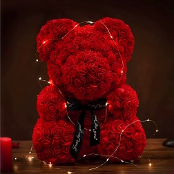 De rozenbeer met LED is een iconisch decoratief stuk dat de zachtheid van rozen combineert met warm, sfeervol licht. Handmatig gerangschikte roosjes van duurzame foam behouden langdurig hun vorm en kleur, terwijl warmwitte LED’s elke ruimte een romantische touch geven zonder gedoe met onderhoud.
