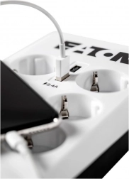 De EATON Protection Box 6 USB is een hoogwaardige stekkerdoos met overspanningsbeveiliging, ontworpen voor de bescherming van pc’s, tv’s, hi‑fi, gameconsoles, netwerkapparatuur en andere gevoelige elektronica. Dankzij de geavanceerde constructie conform IEC 61643-11 filtert hij effectief spanningspieken, storingen en indirecte blikseminductie. De beschermingsstatus houd je in de gaten via de Protection OK-indicator.