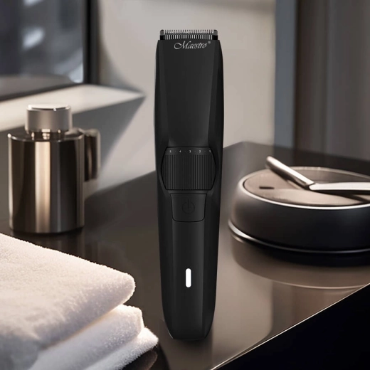 De compacte en krachtige Maestro MR-640 haartrimmer biedt tot 120 minuten draadloos gebruik, snel opladen via USB‑C en nauwkeurige lengte-instelling van 0,5–20 mm. Dankzij roestvrijstalen messen, een LED-display en een reisslot is hij ideaal voor thuis, professioneel gebruik en op reis.