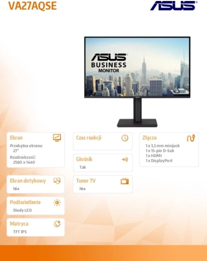 Stijlvolle 27" monitor ASUS VA27AQSE met een kwalitatief IPS-paneel met fijne resolutie, vloeiende weergave dankzij de verversingssnelheid van 75 Hz en veelzijdige aansluitingen HDMI, DisplayPort en VGA. Een uitstekende keuze voor werk, studie en entertainment met nauwkeurige kleuren en brede kijkhoeken.