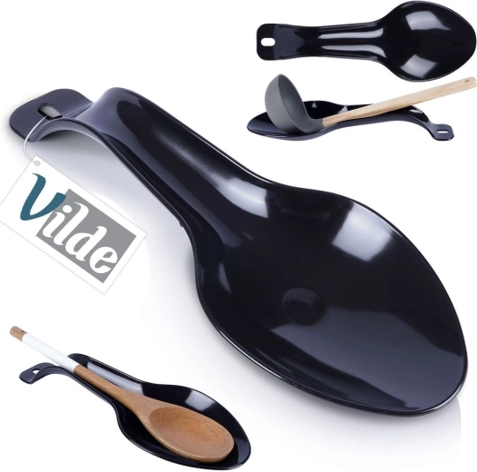 Deze praktische aflegmat voor lepels en opscheplepels helpt een schoon werkblad te behouden tijdens het koken. Dankzij de gevormde kom vangt hij druppels en sausresten op, zodat je plakkerige vlekken op het blad en naast het fornuis voorkomt. Het minimalistische, moderne design in zwart past perfect in elke keuken.