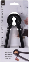 Betrouwbare notenkraker van sterke aluminiumlegering in het zwart, ontworpen voor snel en veilig kraken van verschillende notensoorten. De geribbelde opening houdt de schaal stevig vast en kan ook worden gebruikt voor het openen van flessen mousserende wijn.
