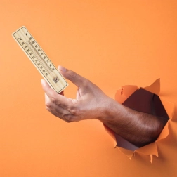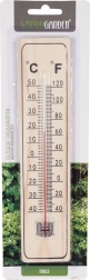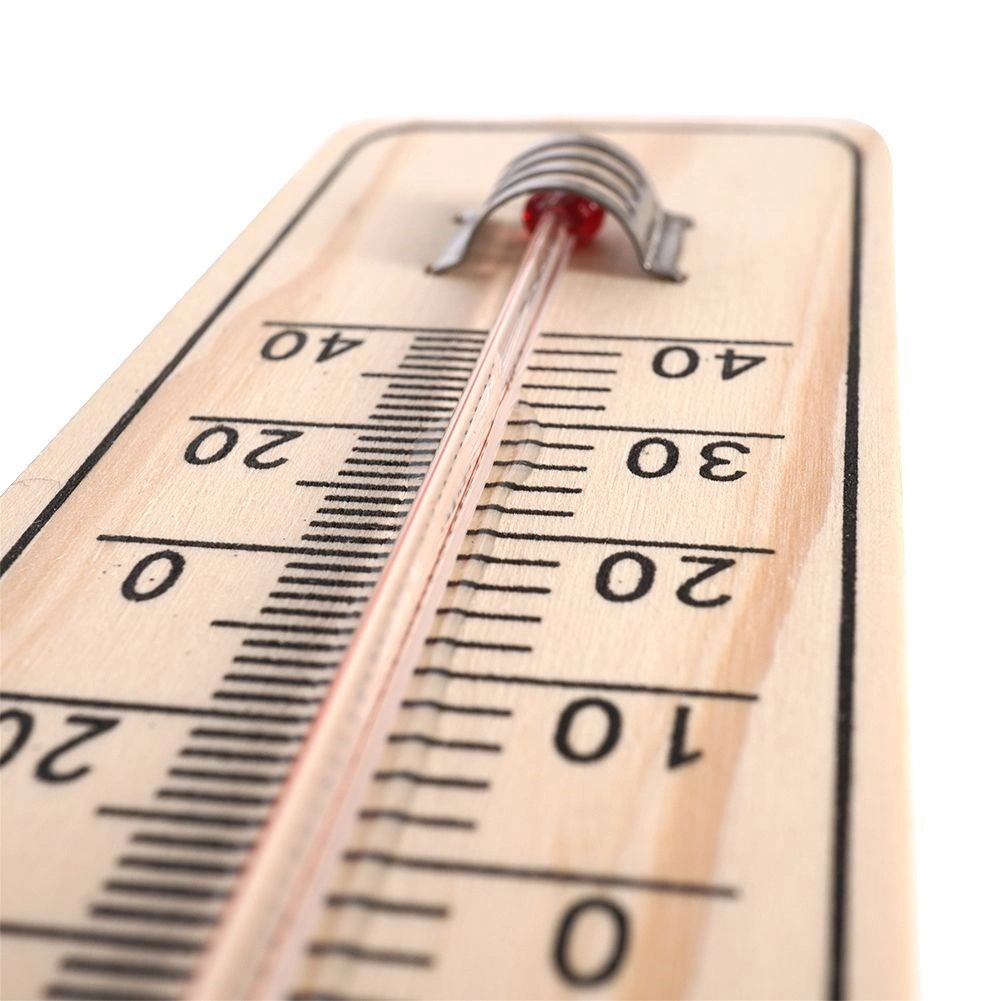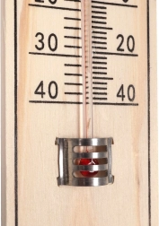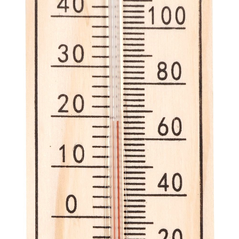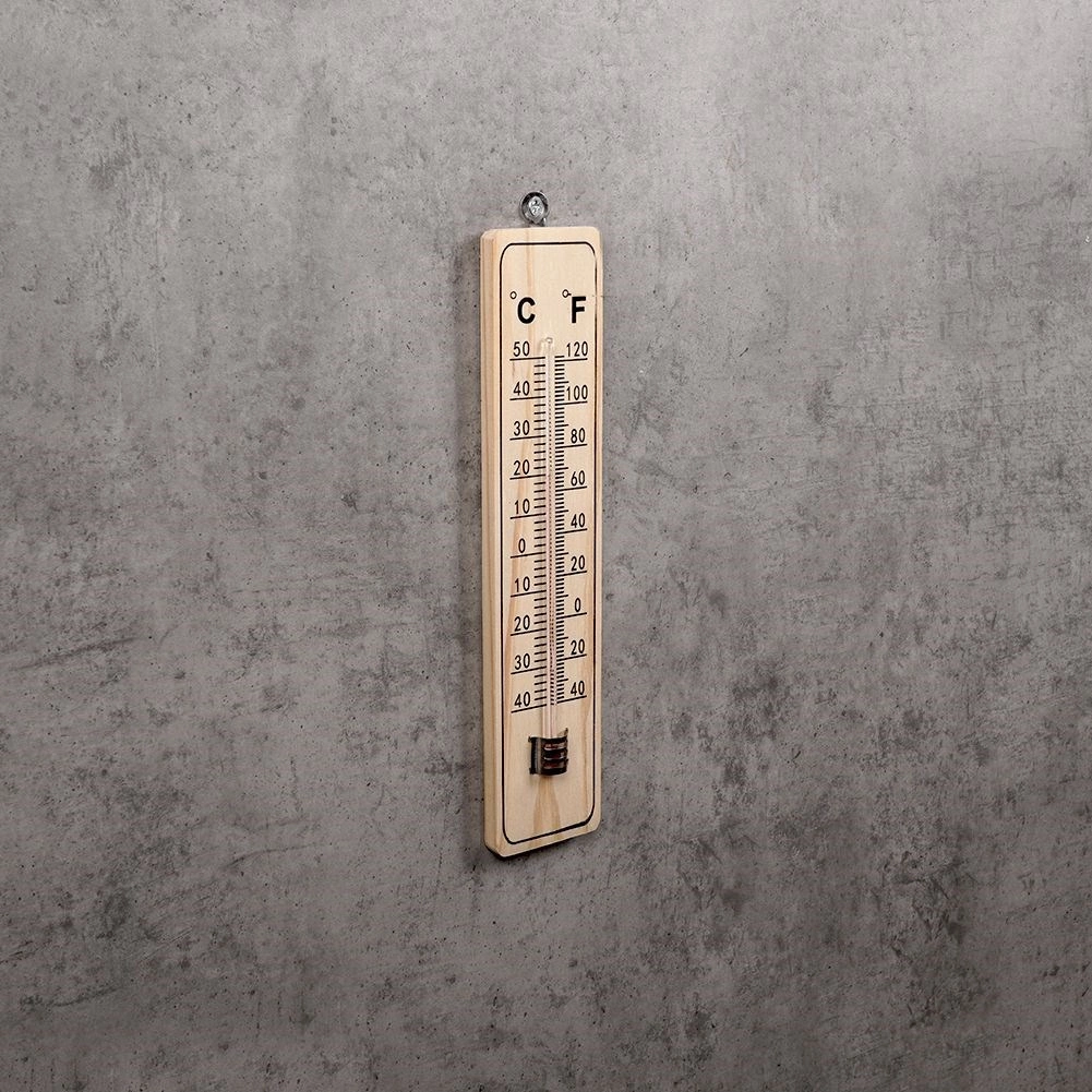 De robuuste behuizing van duurzaam MDF en de glazen capillair met gekleurde vloeistof worden beschermd door een metalen clip. Het praktische ophangoog maakt eenvoudige montage aan de muur mogelijk zonder ingewikkeld gereedschap. Temperatuurbereik van -40 °C tot +50 °C (-40 °F tot +120 °F) dekt de gangbare omstandigheden het hele jaar door.