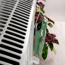 Het gebruik is uiterst eenvoudig – vul het reservoir met water (inhoud 160 ml) en hang het met de stevige haak aan een lamel van de radiator. De warmte van de radiator zorgt voor een zachte en stille natuurlijke verdamping zonder elektriciteit, filters en geluid.