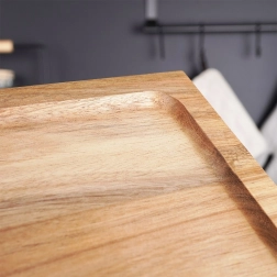 Deze veelzijdige serveerplank met pootjes blinkt uit door een clean design en functionaliteit. Dankzij het sterke acaciahout is hij bestand tegen vocht en vervorming, ideaal voor dagelijks gebruik in de keuken en bij diners. De verhoogde randen houden etenswaren op hun plaats en vergemakkelijken het dragen.