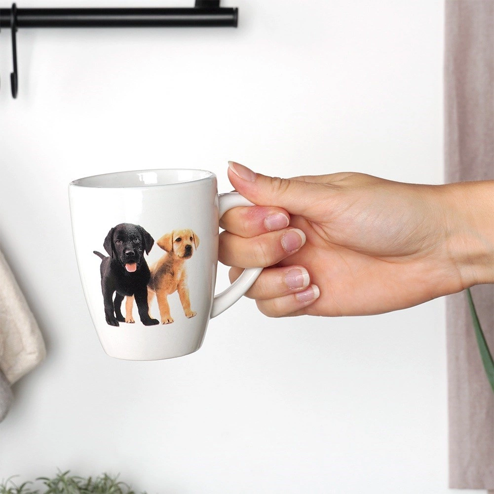 Realistische foto’s van honden geven de mokken een unieke charme en maken van je kop koffie een klein moment van geluk. Een geweldig cadeau‑idee voor dierenliefhebbers.