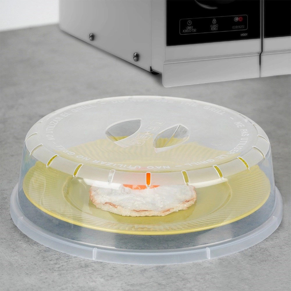 De koepelvorm bedekt het hele bord en vangt druppels en vet op, zodat het interieur van de magnetron schoon en geurvrij blijft.