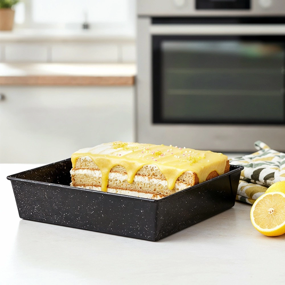 De duurzame granieten laag minimaliseert aanbranden en maakt het gemakkelijk om desserts en ovengerechten te lossen.