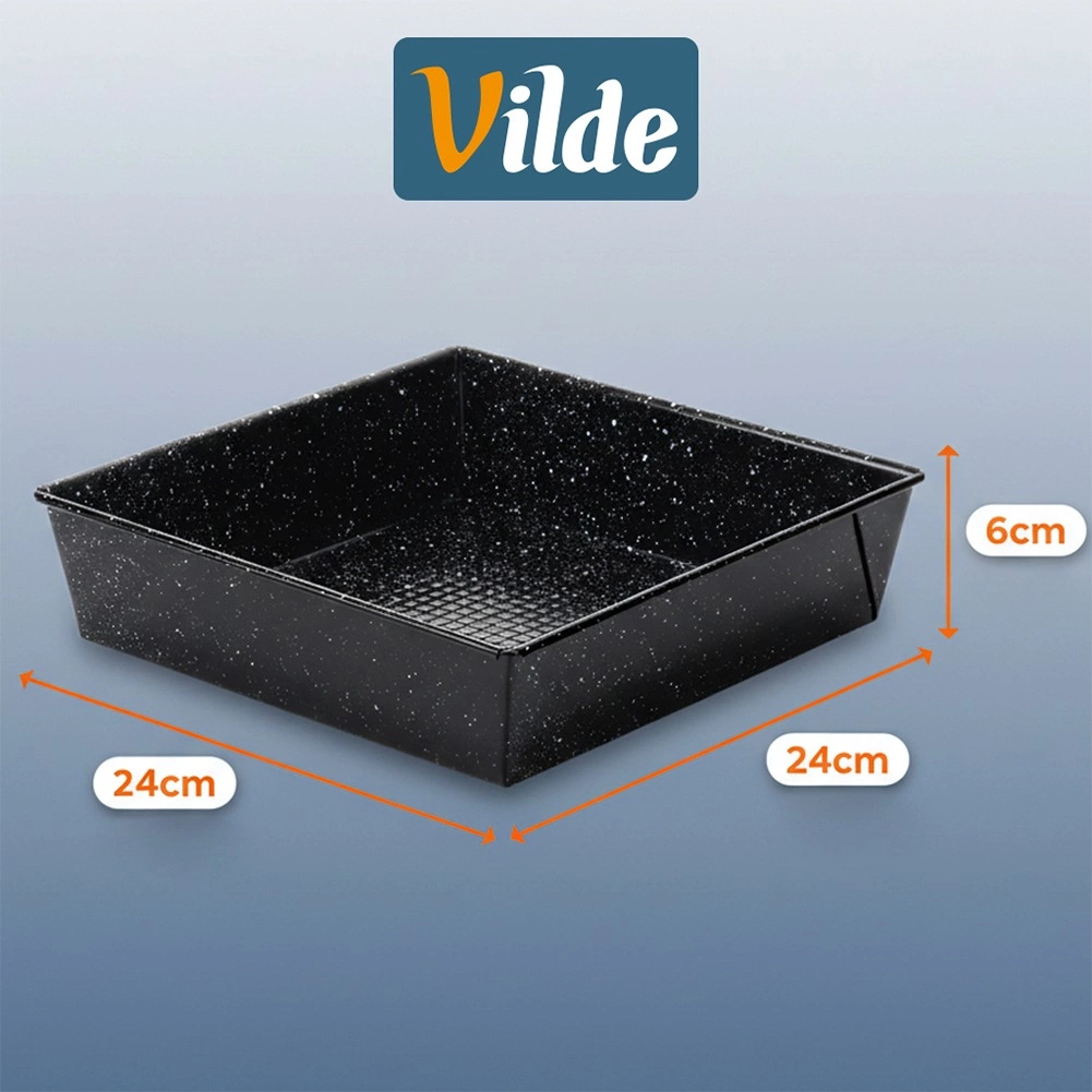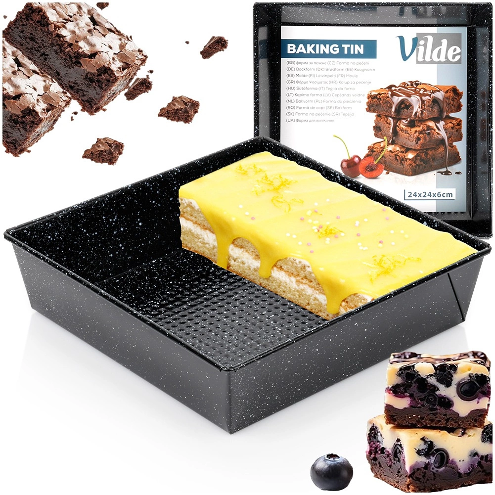 Dankzij de hoge temperatuurbestendigheid tot 230 °C is hij perfect voor dagelijks gebruik. De robuuste afwerking is veilig voor contact met voedsel en is eenvoudig te reinigen. Het praktische formaat van 24 × 24 × 6 cm biedt een optimale diepte voor desserts en hartige gerechten.
