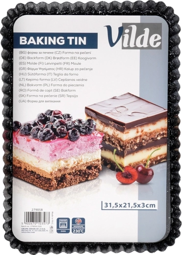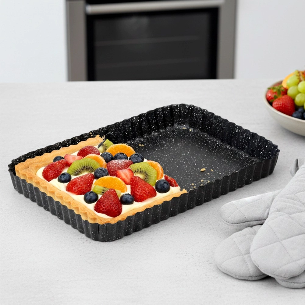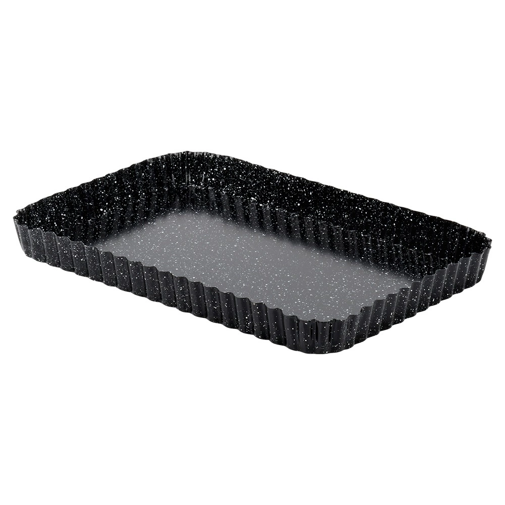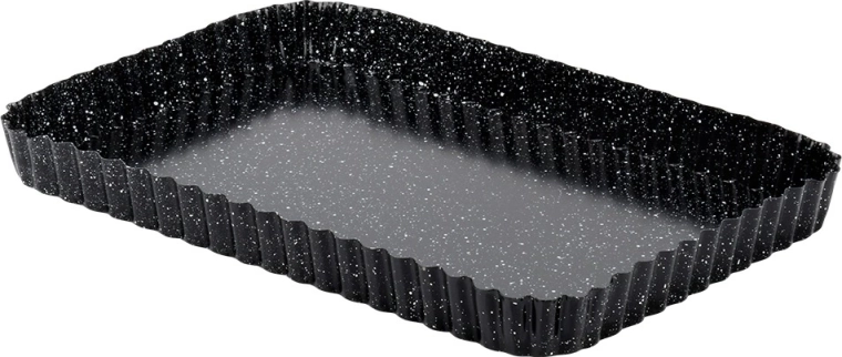 De rechthoekige vorm met gegolfde rand en uitneembare bodem is een uitstekende keuze voor zowel dagelijks als feestelijk bakken. Dankzij hoogwaardig koolstofstaal met granieten coating geleidt hij warmte uitstekend en helpt hij een perfect en gelijkmatig resultaat te bereiken zonder aanbakken.