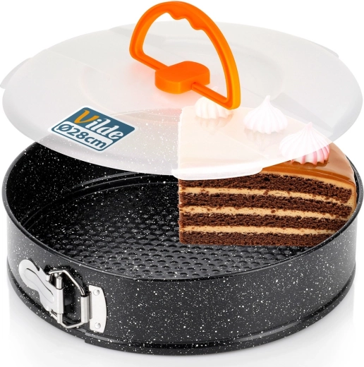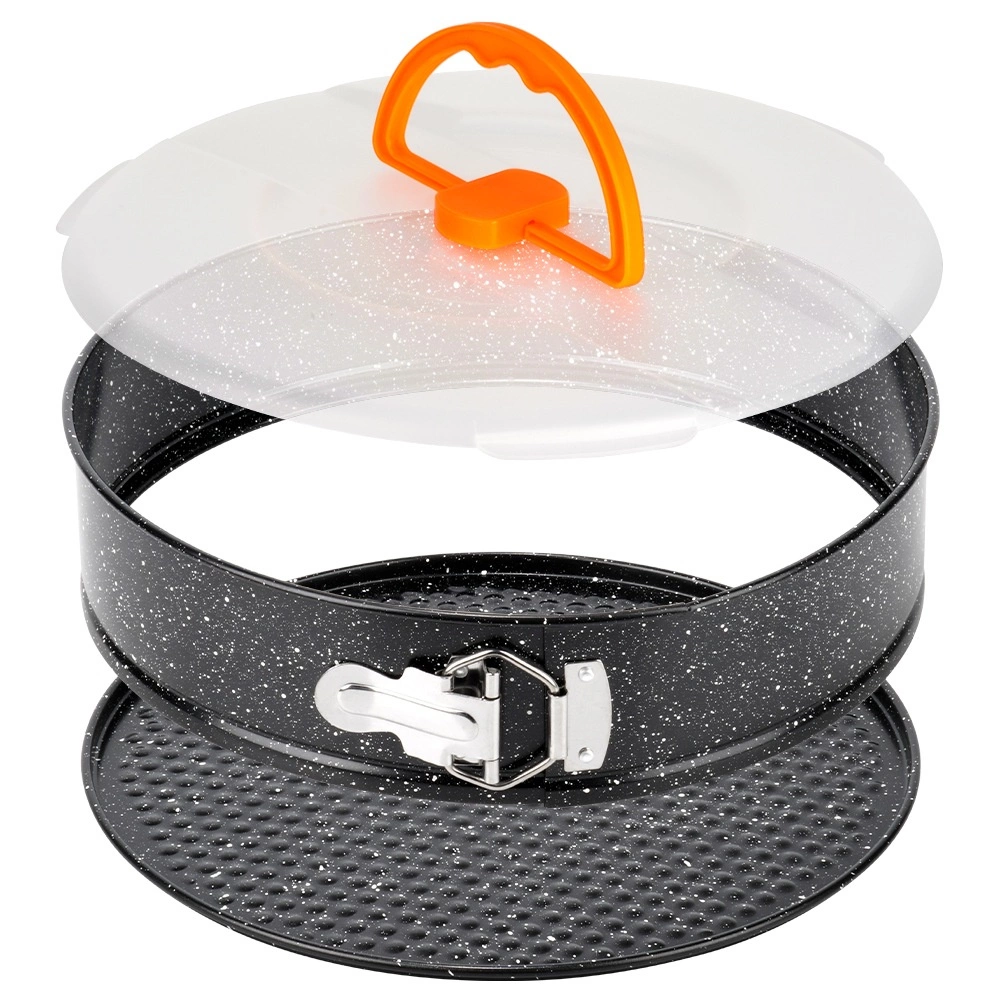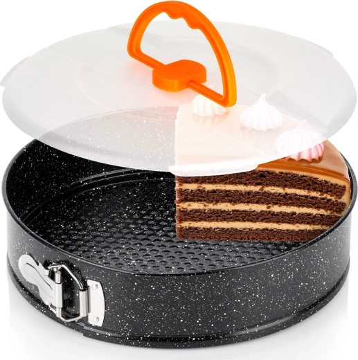 Dankzij de springrand en de uitneembare bodem haal je het gebak eruit zonder de vorm te vervormen. De transparante deksel met comfortabele greep beschermt tegen uitdrogen en vergemakkelijkt zowel transport als koelkastsopslag.