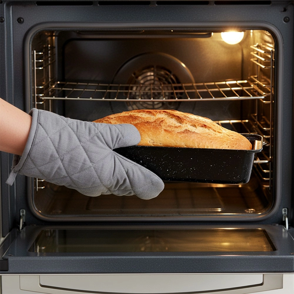 Dankzij de afgeronde hoeken en het hoogwaardige oppervlak haal je het brood moeiteloos uit de vorm, zelfs met minimaal vet. De vorm is makkelijk schoon te maken – een vochtige doek of handwas is voldoende. Geschikt voor gas- en elektrische ovens tot 230 °C.
