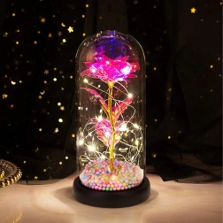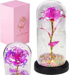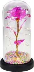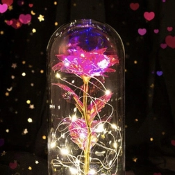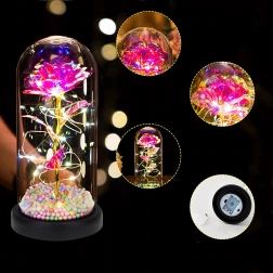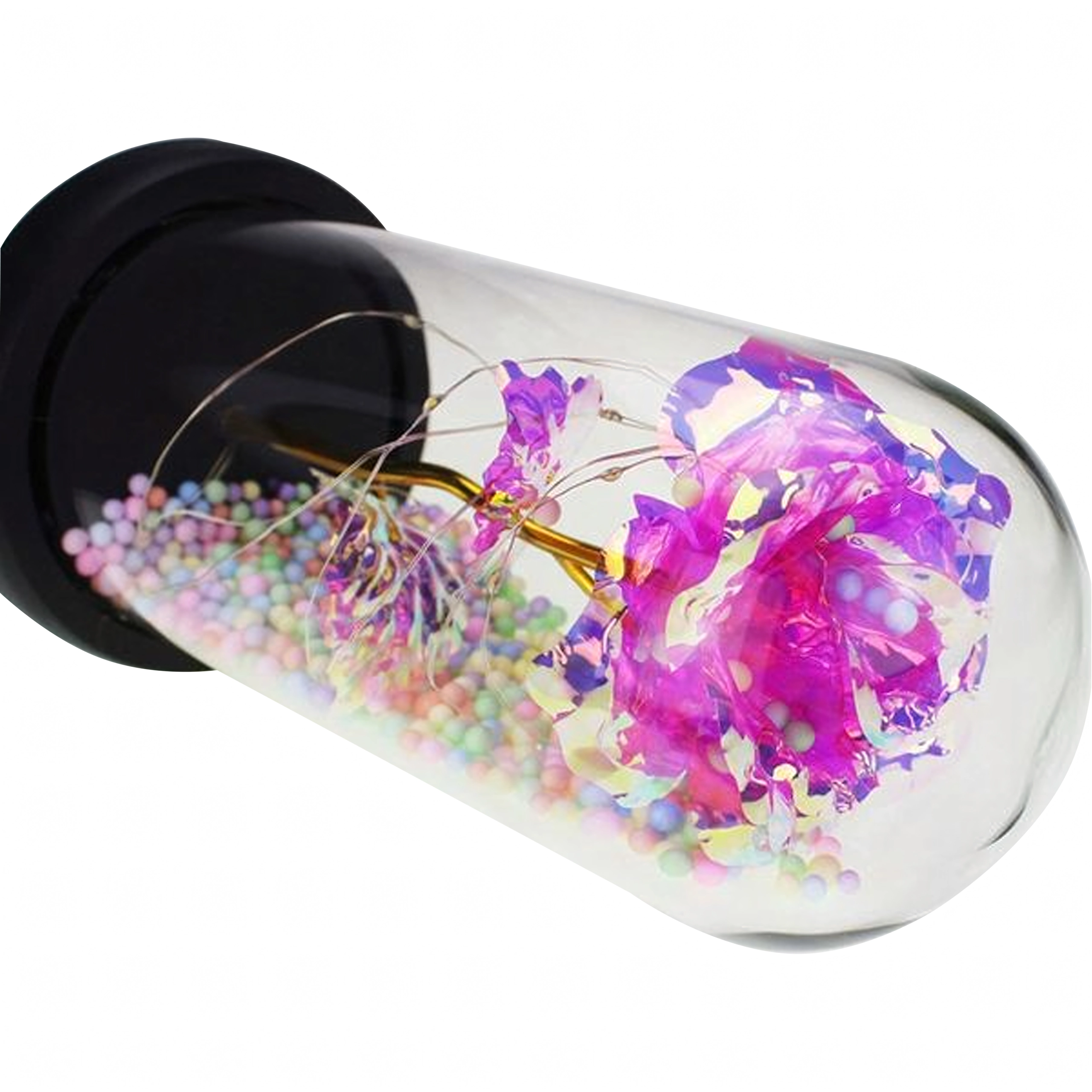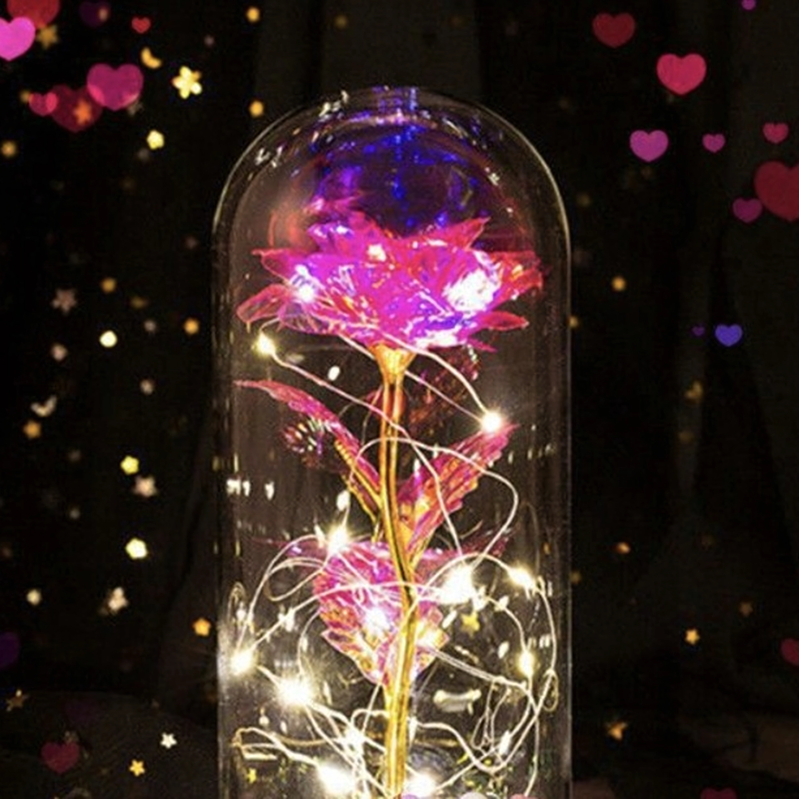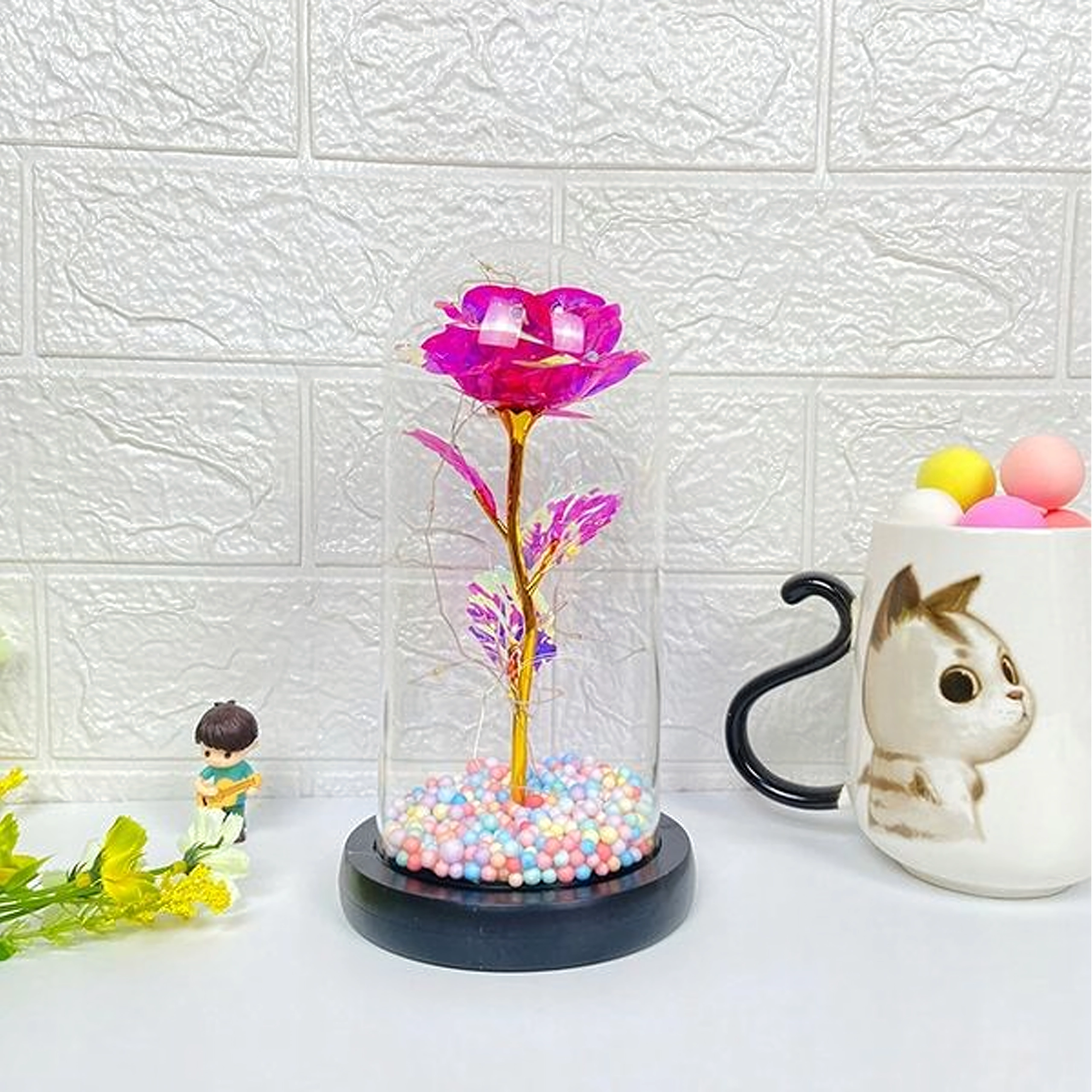 De elegante LED-roos onder een glazen stolp verlicht elk interieur met warm, sprankelend licht. Ze combineert moderne LED-verlichting met het tijdloze symbool van liefde – de roos – en vormt zo een indrukwekkende woonaccessoire en een onvergetelijk cadeau. De stolp beschermt de bloem tegen stof en benadrukt haar zachte gloed.
