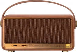 De geïntegreerde batterij zorgt voor tot 19 uur luisteren. Accordeon‑stijl bedieningsknoppen maken snelle aanpassingen van volume en tracks mogelijk, terwijl de Edifier ConneX-app vijf presets biedt (Muziek, Party, Vocal, Film, Game) en een eigen EQ. Het elegante retrodesign met houtdecor en handgreep past zowel in je interieur als bij outdooractiviteiten.