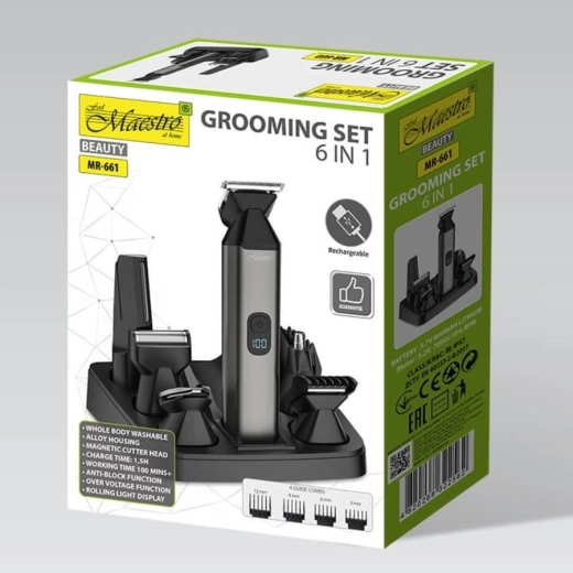 - 6-in-1 multifunctioneel – opzetstukken voor haar knippen, baardtrimmen en details.